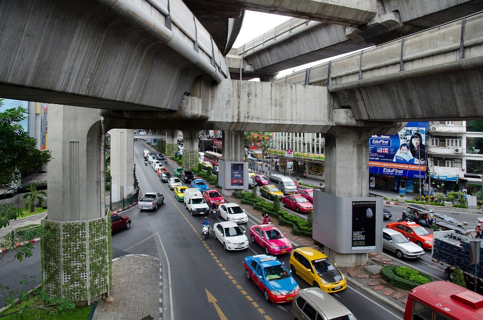 Le Sky Train étant ses voies en béton au-dessus des avenues