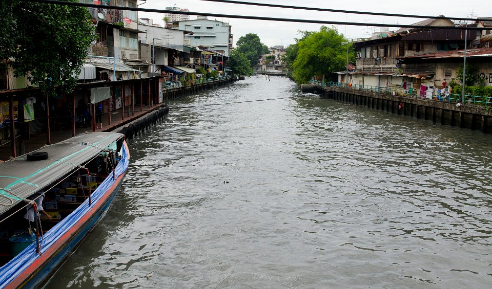 Les canaux disposent d'un transport par bateau, ici le canal de San Sap qui relie la banlieue est au centre ville