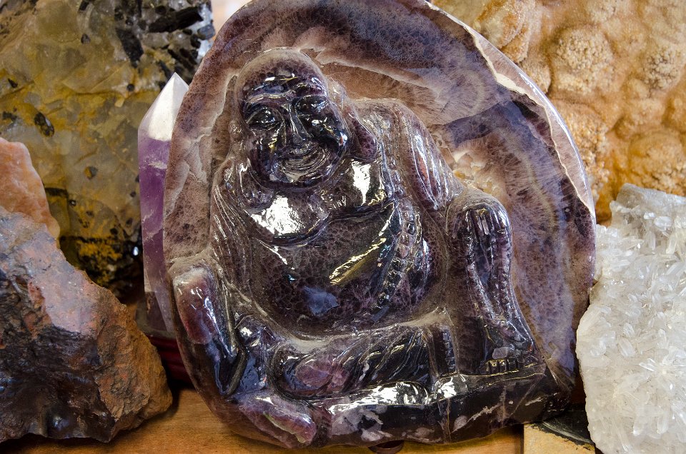 Bouda sculpté dans un bloc d'améthyste