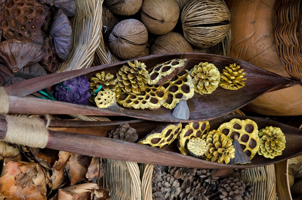 Noix et végétaux divers à usage décoratif