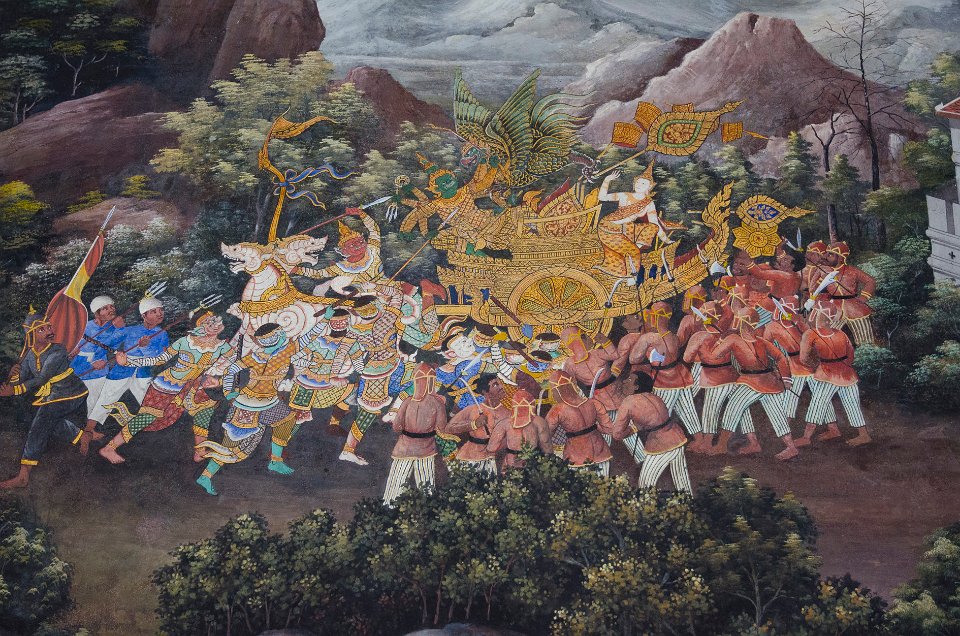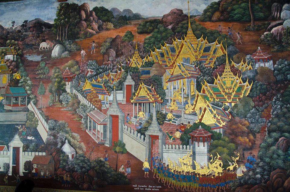 28 Bot du Bouddha d'Emeruade et la galerie du Ramakien à gauche (fresques)