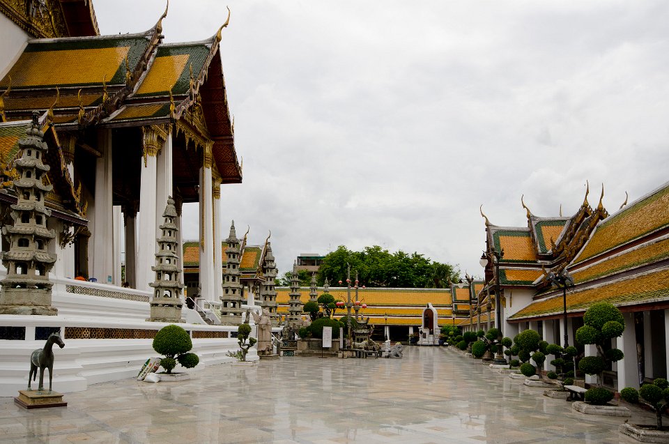 Le wat Suthat est connu, entre autres, pour avoir dans ses murs le plus grand wihan (hall principal) de Bangkok. C'est un des six temples royaux de Thailande.