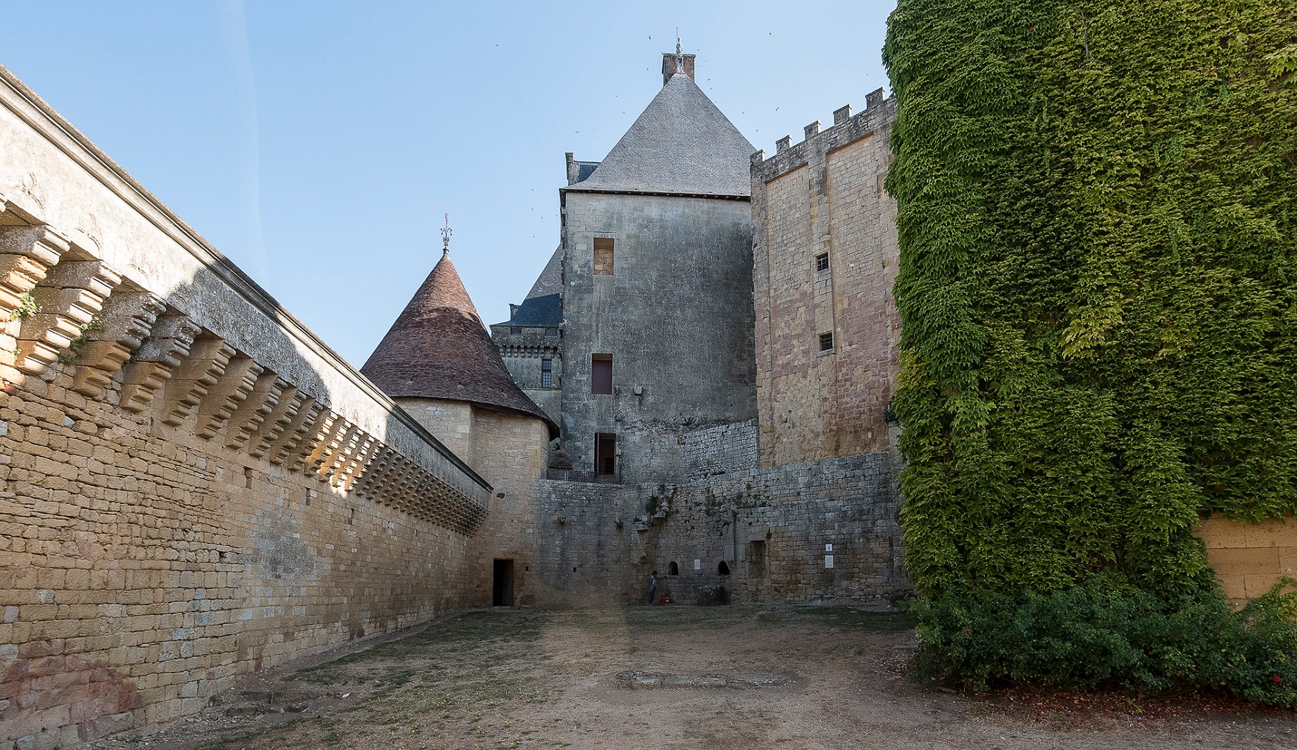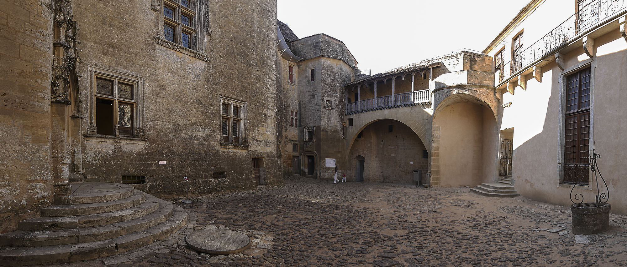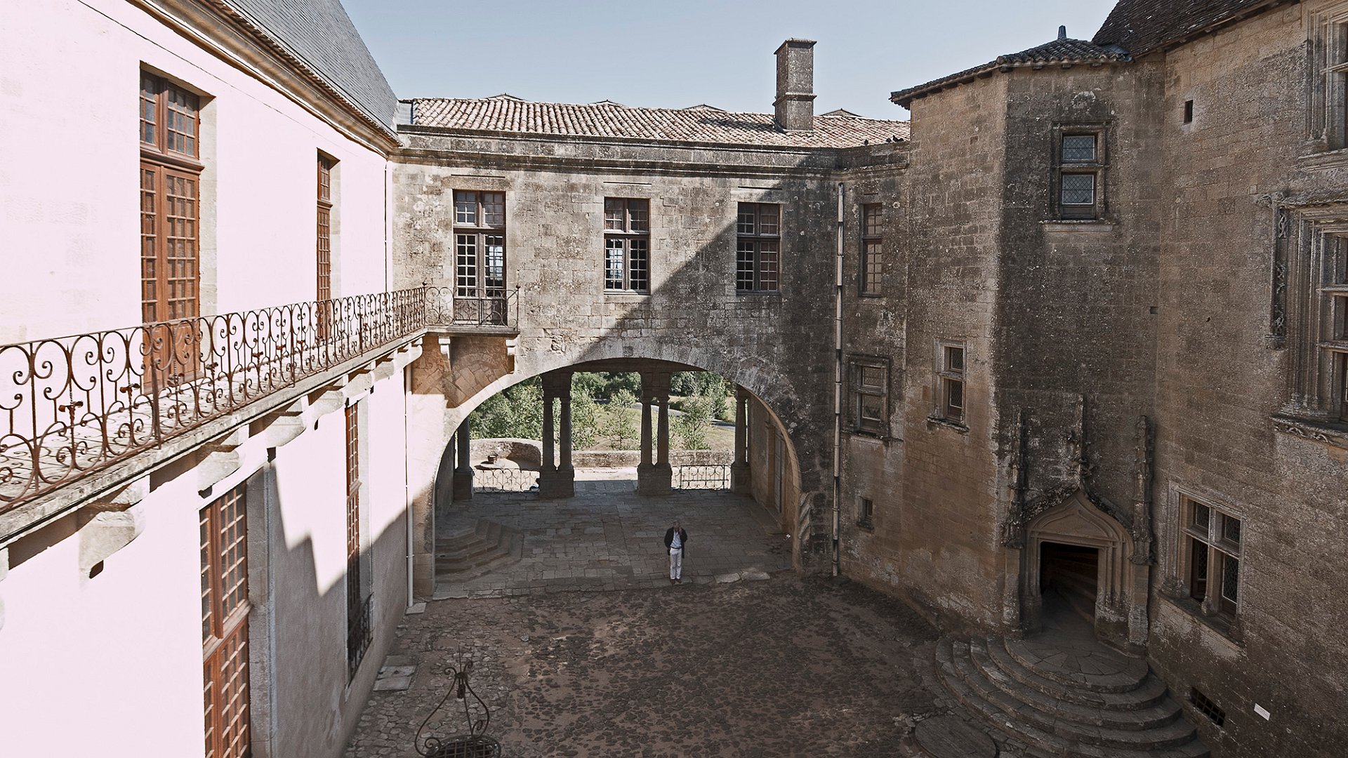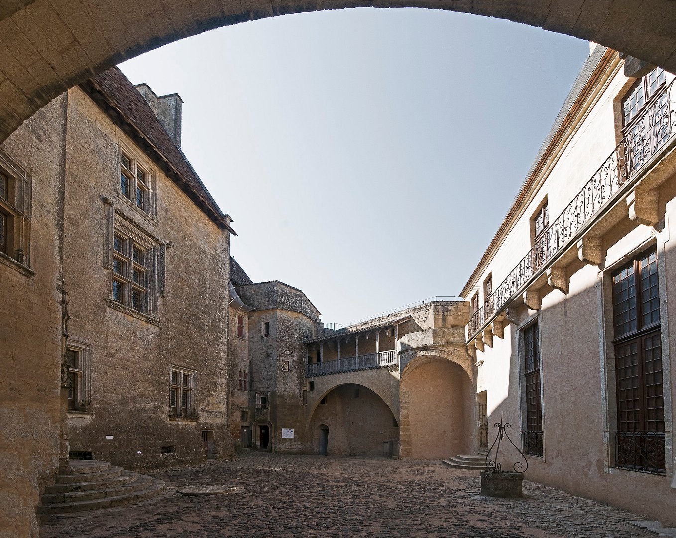 La cour d'honneur, à gauche escalier d'accès au logis de pons