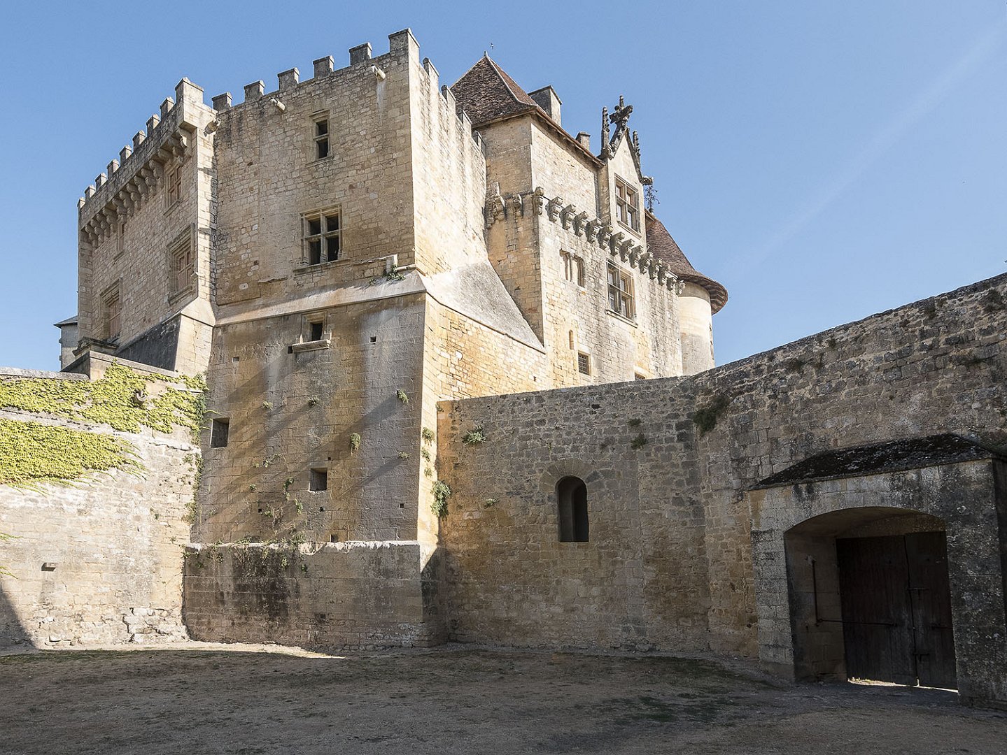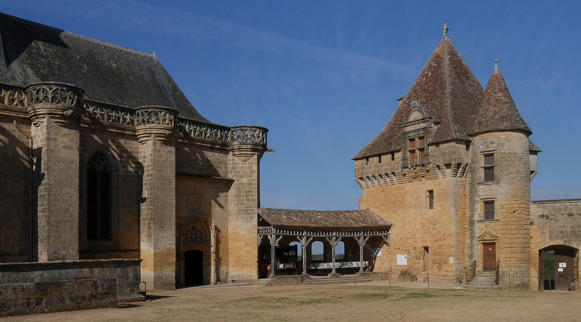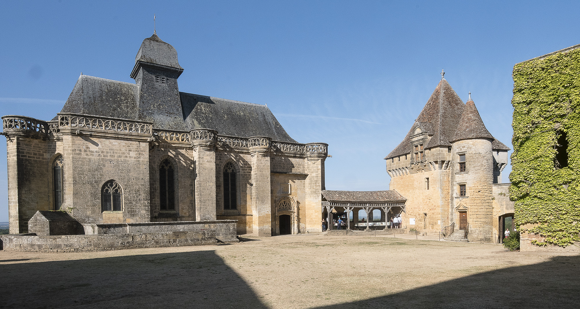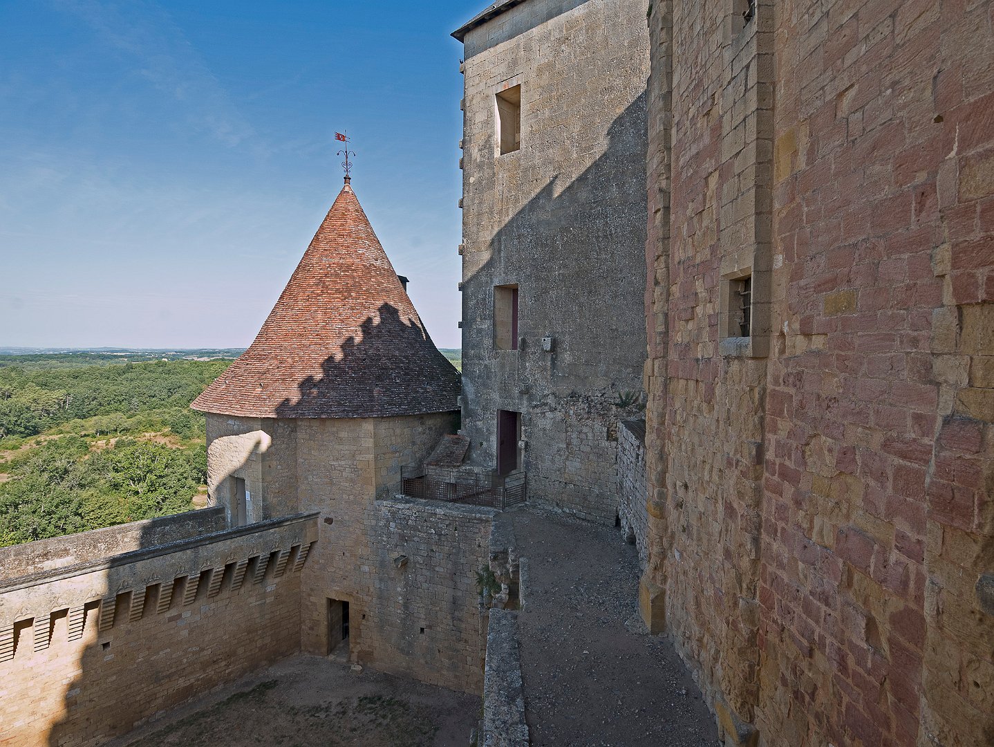 La cour d'honneur, à gauche escalier d'accès au logis de pons