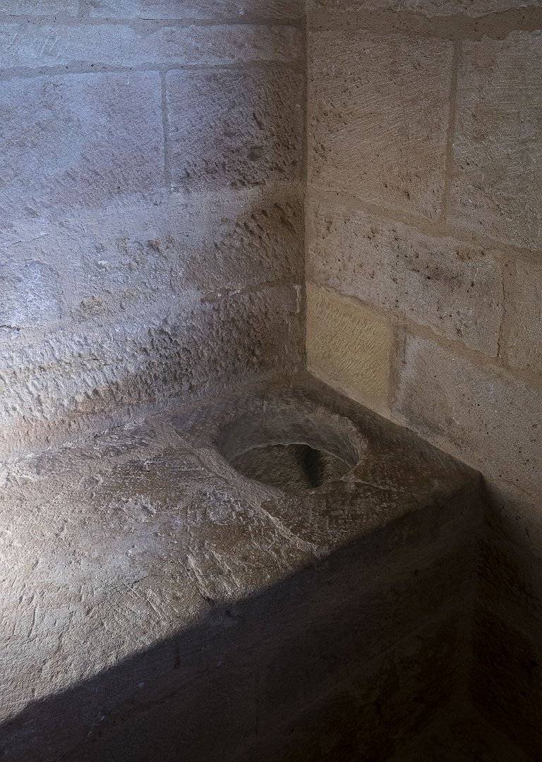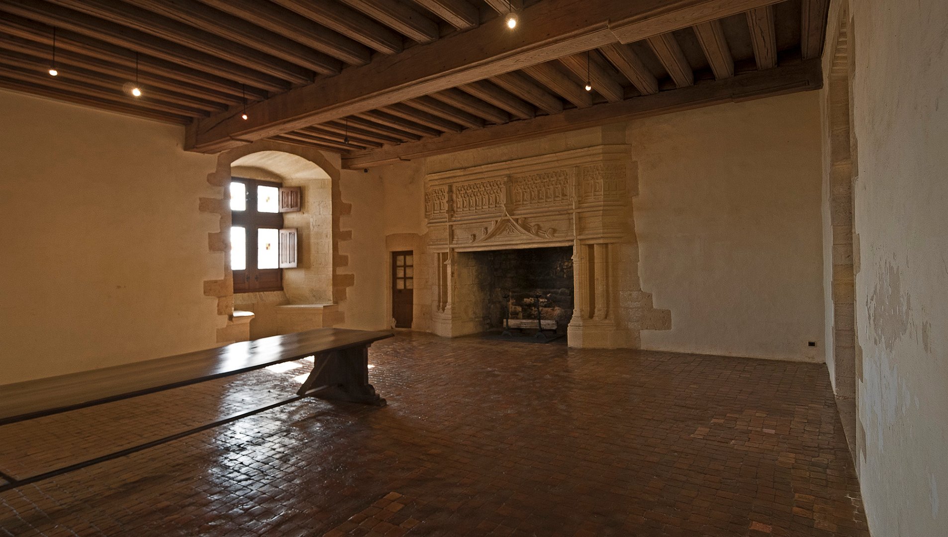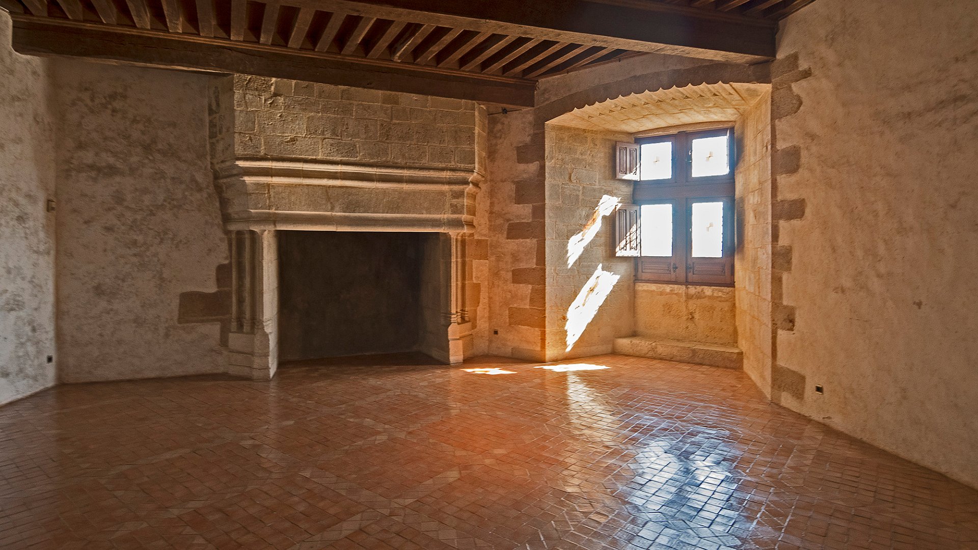 Donjon hexagonal, cheminée et fenètre à croisée