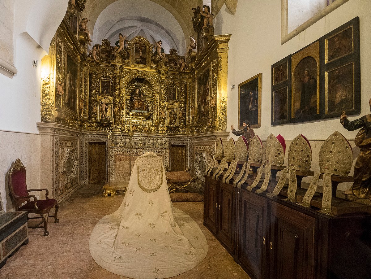 Une des chapelles, richement décorée avec des habits sacerdotaux