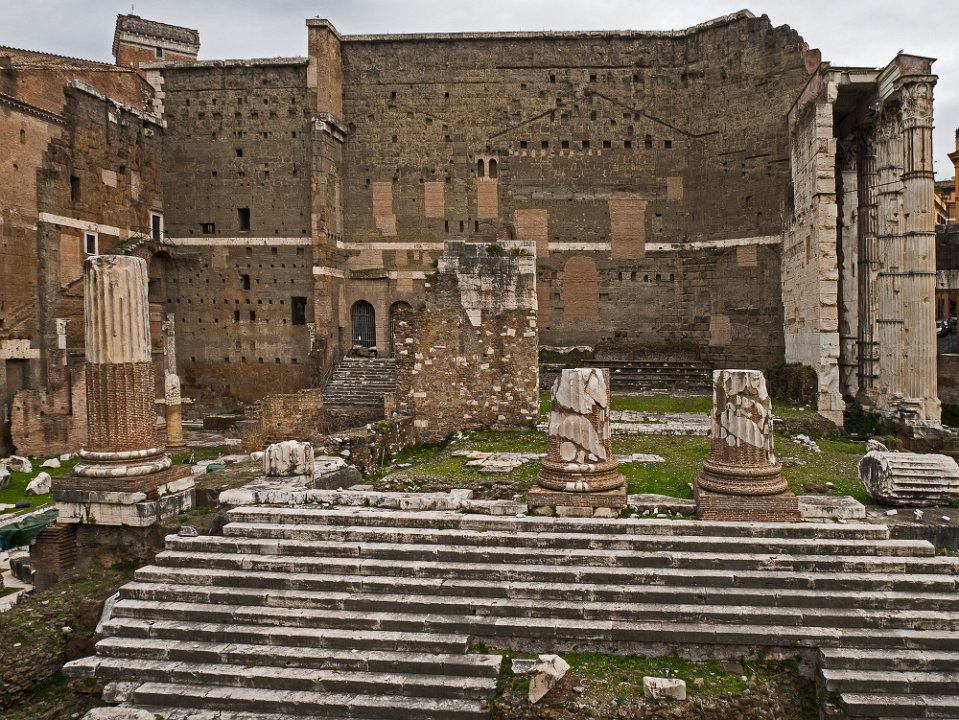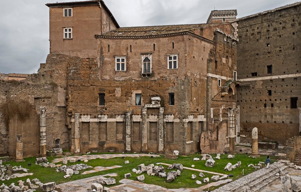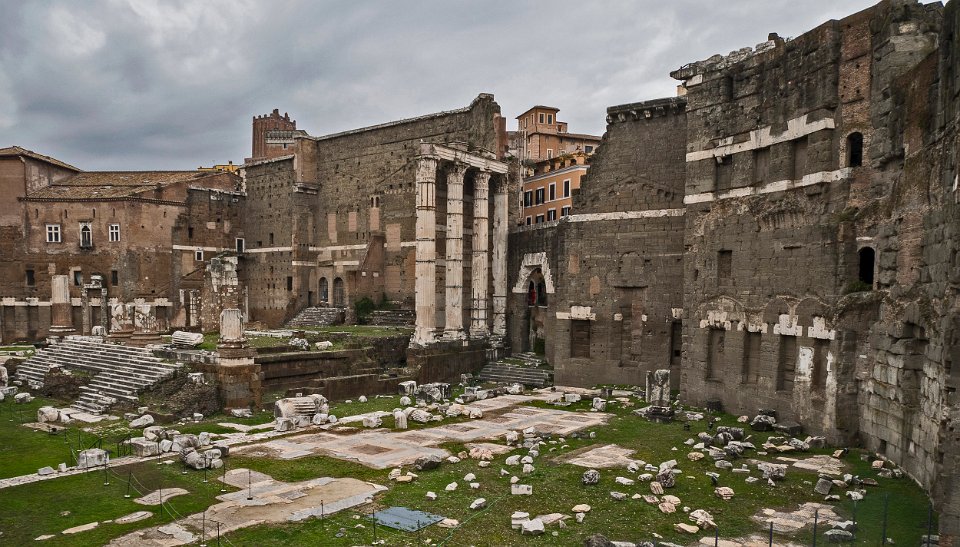 Vue générale depuis le forum Romain (de l'autre côté de la rue) Forum d'Auguste et Temple de Mars Vengeur Temple de Mars Vengeur Temple de Mars Vengeur