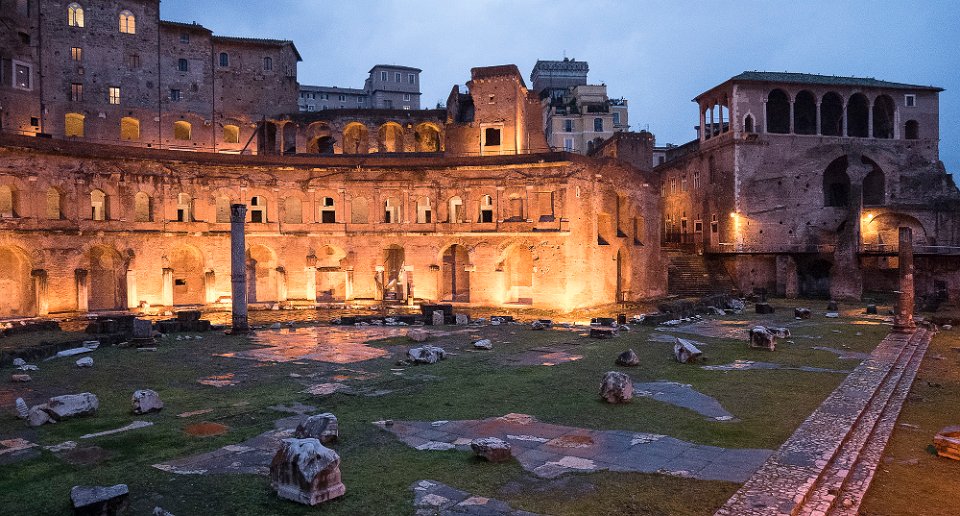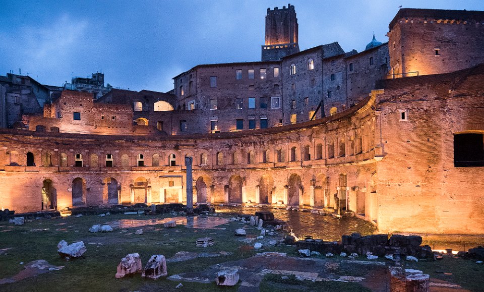 Vue nocturne du Forum de Trajan Vue nocturne du Forum de Trajan
