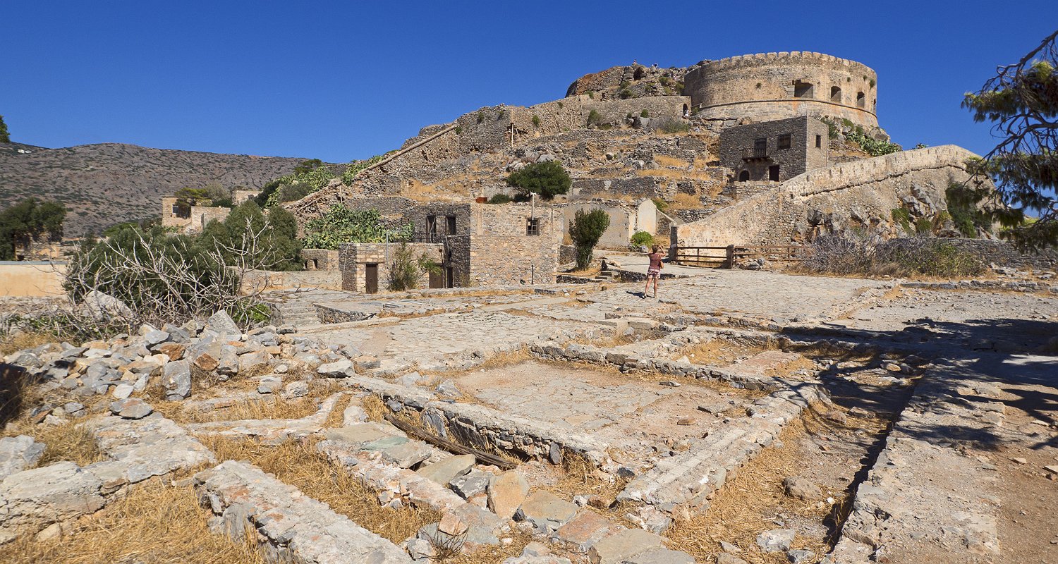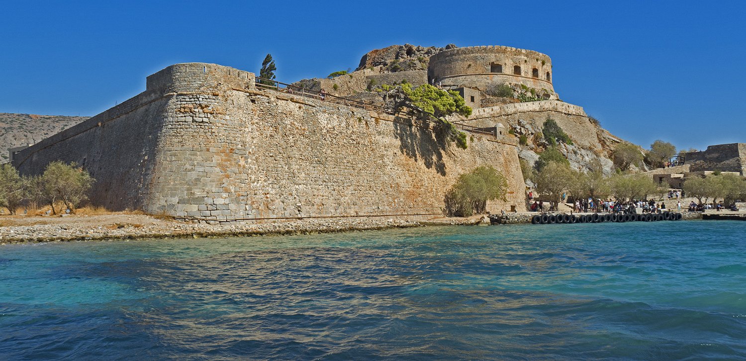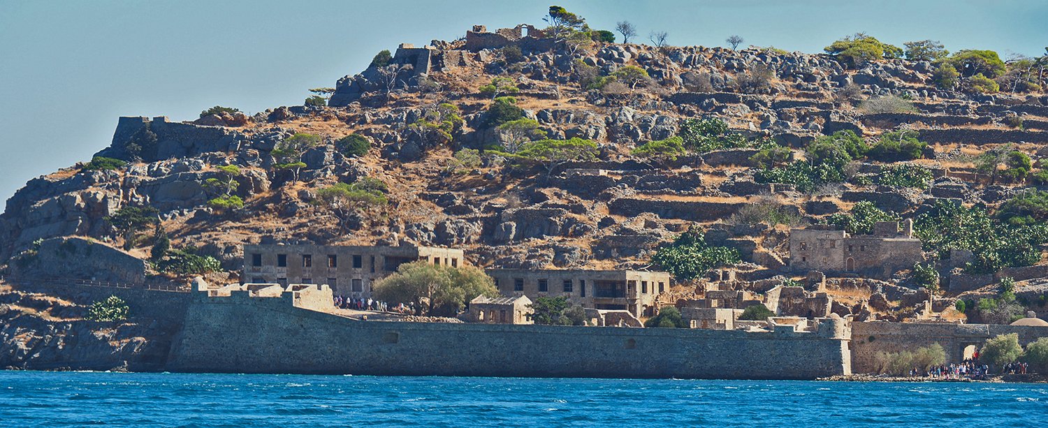 Spinalonga est un ilot forteresse situé à l'entrée du golfe de Mirabello. La forteresse fut construite par les vénitiens pour défendre le port d'Elounda. De 1904 à 1957, l'ile fut un lieu de rétention des lépreux qui vivaient auparavant dans les quartiers misérables des villes crétoises.