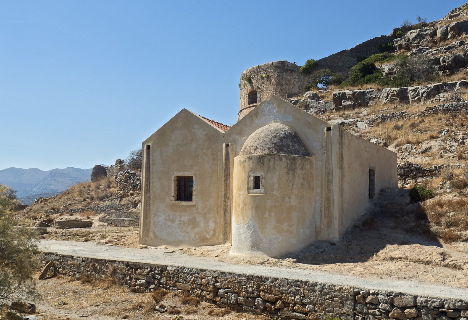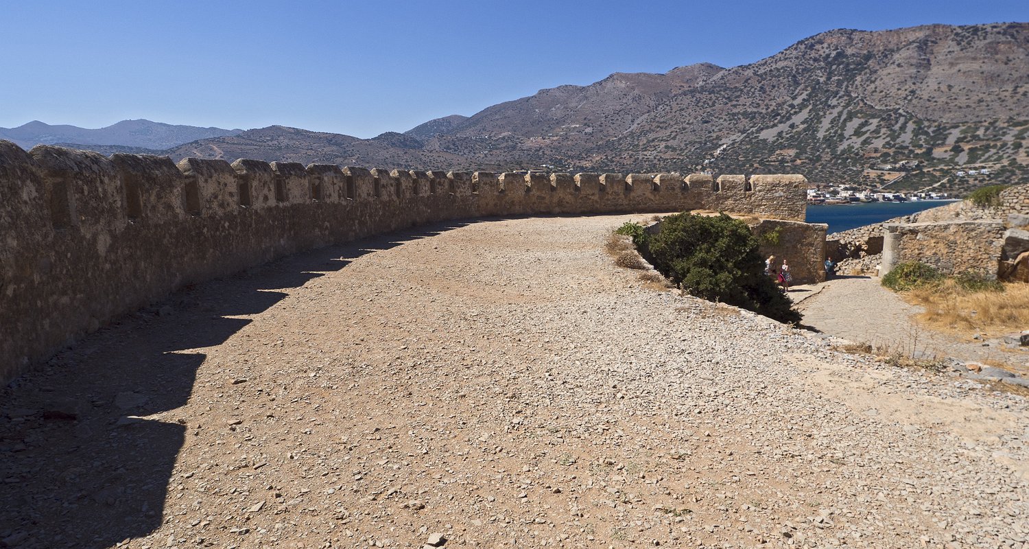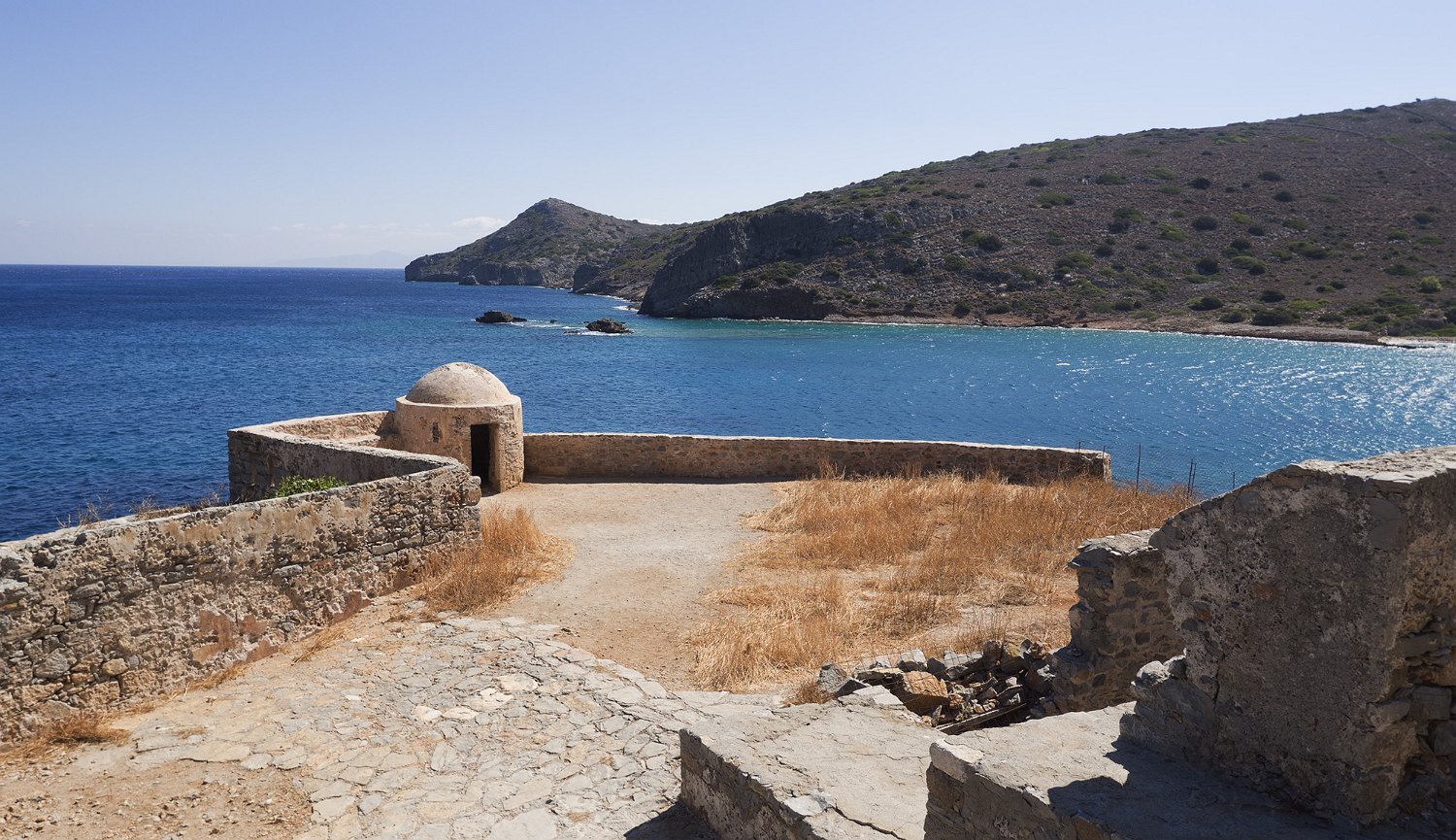 Spinalonga est un ilot forteresse situé à l'entrée du golfe de Mirabello. La forteresse fut construite par les vénitiens pour défendre le port d'Elounda. De 1904 à 1957, l'ile fut un lieu de rétention des lépreux qui vivaient auparavant dans les quartiers misérables des villes crétoises.