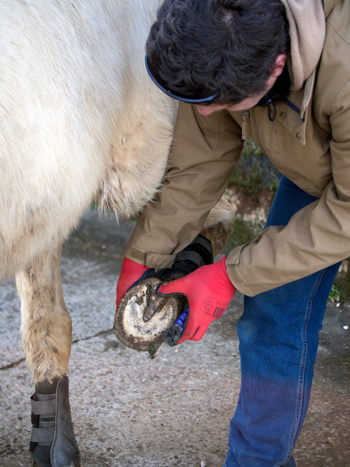Nettoyage des sabots avant la pose des guêtres