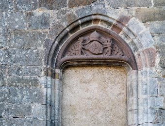 Sculpture sur l'encadrement d'une porte d'une maison noble