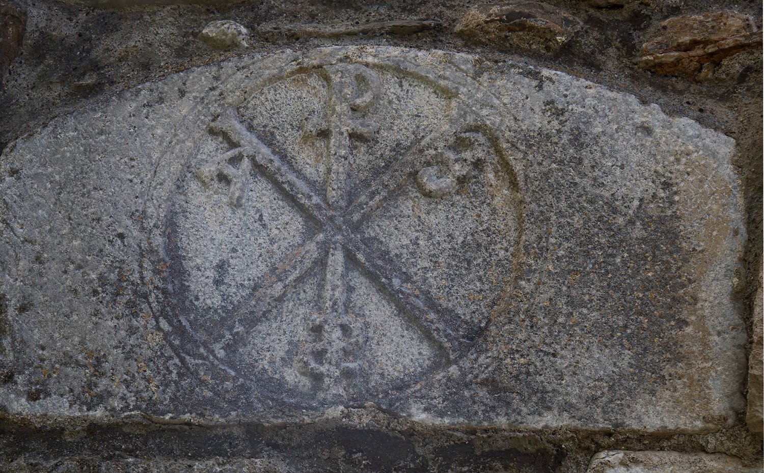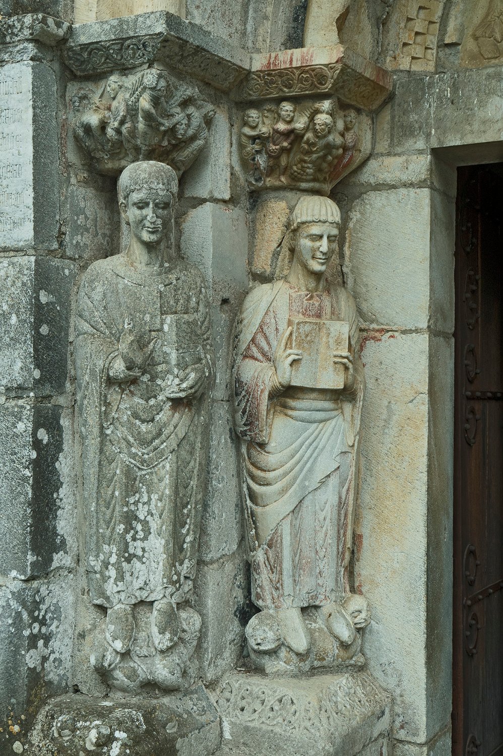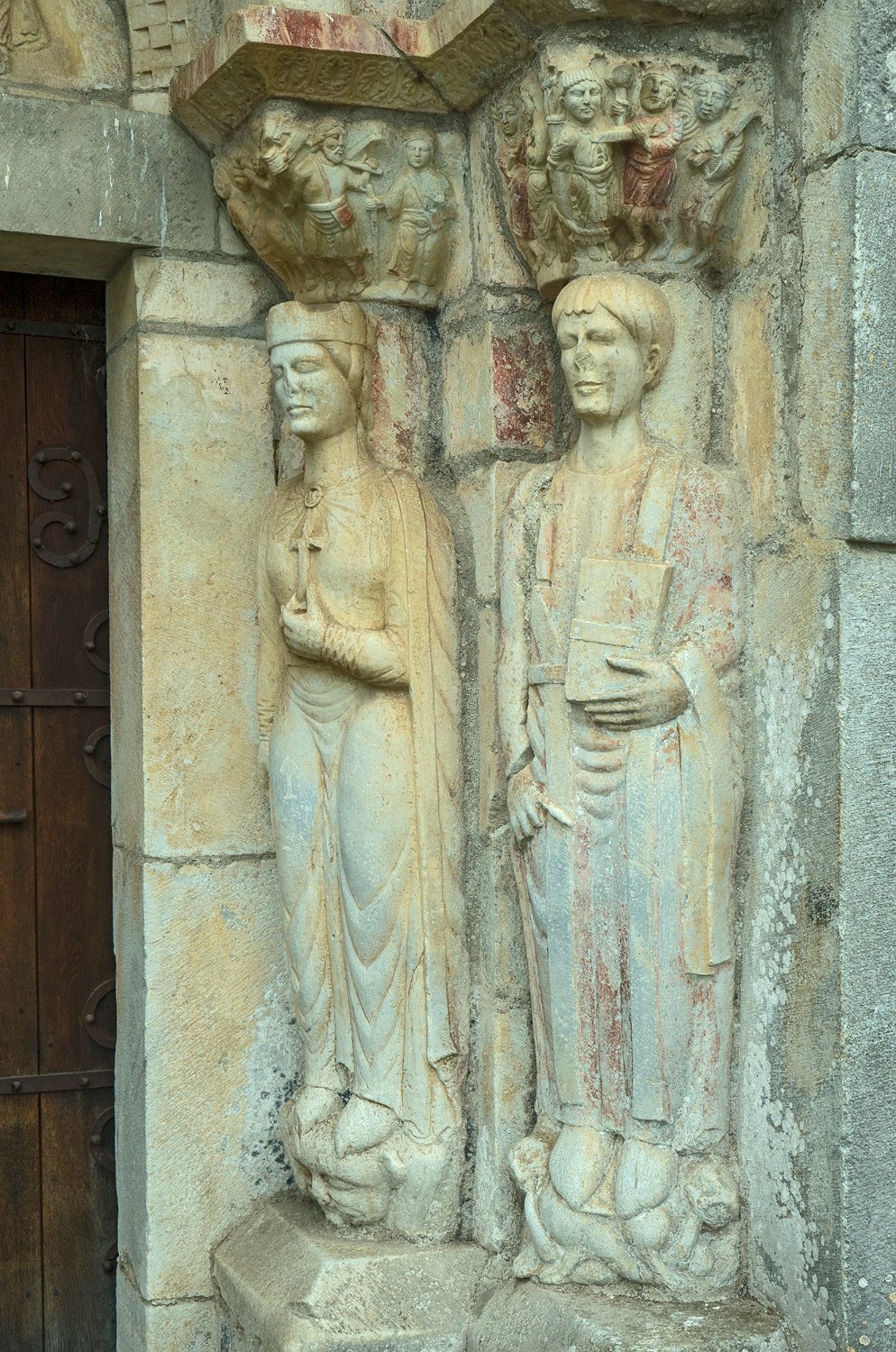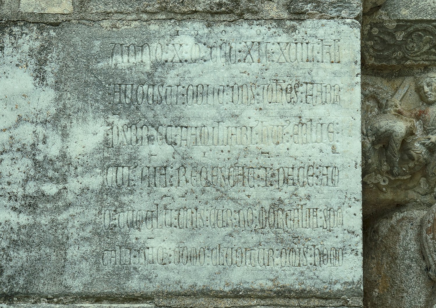 Outre les colonnes de l'abside, la construction de la basilique a utilisé de nombreuses pierres sculptées d'origine romaine (Lugdunum Convenarum) - Ici rosaces et acanthes enroulées