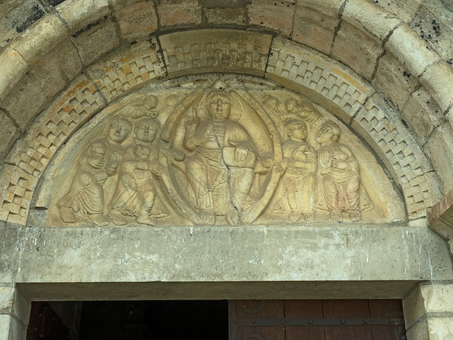 Tympan évoquant le chapître 4 de l'Apocalypse