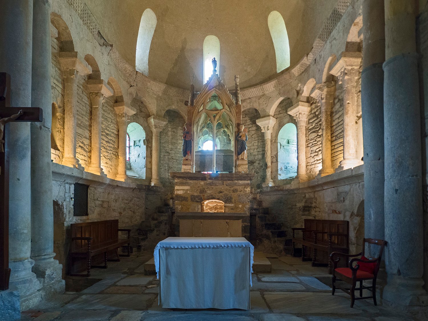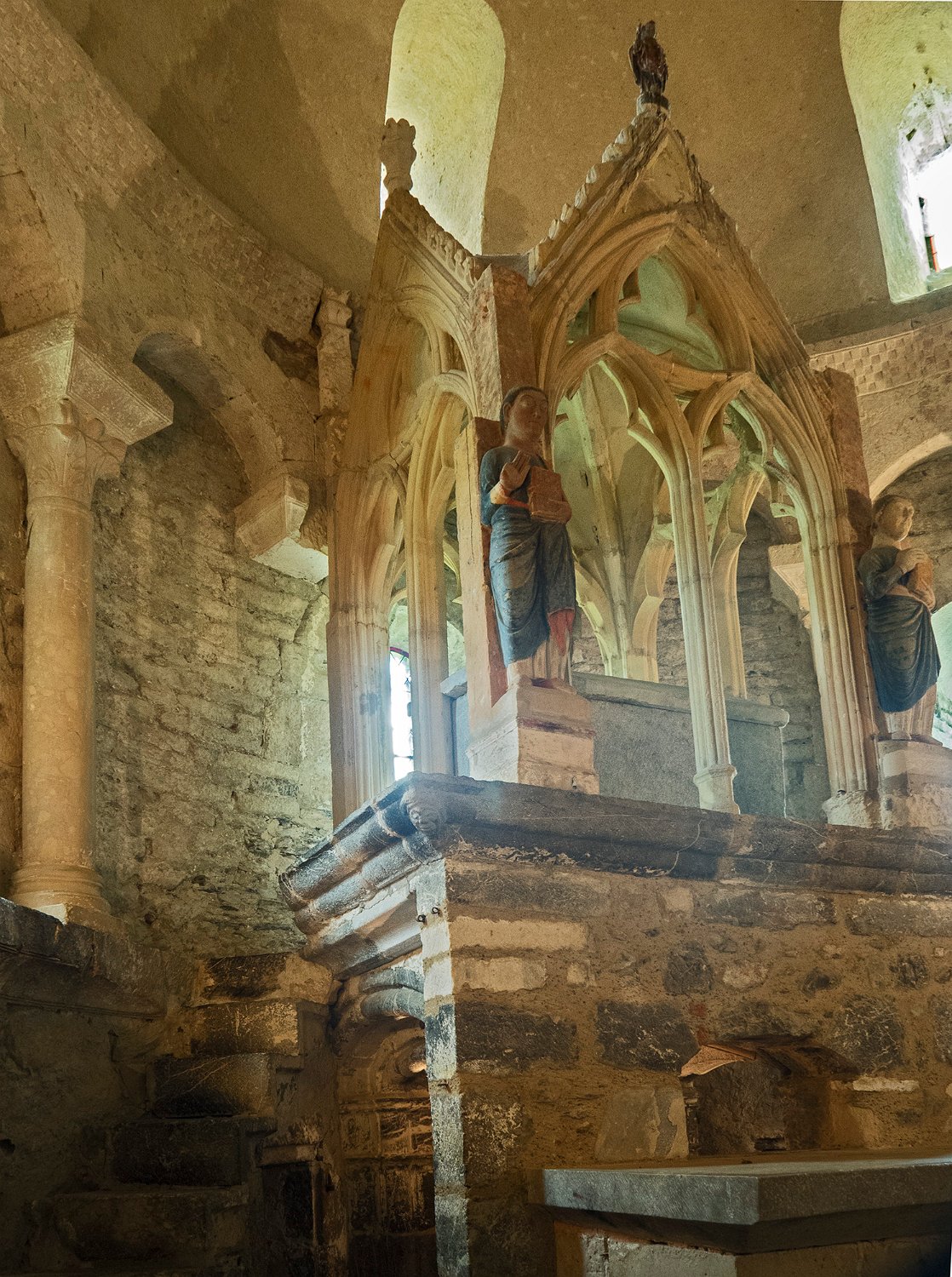 Une des absidioles en cul de four. A droite l'escalier menant au clocher