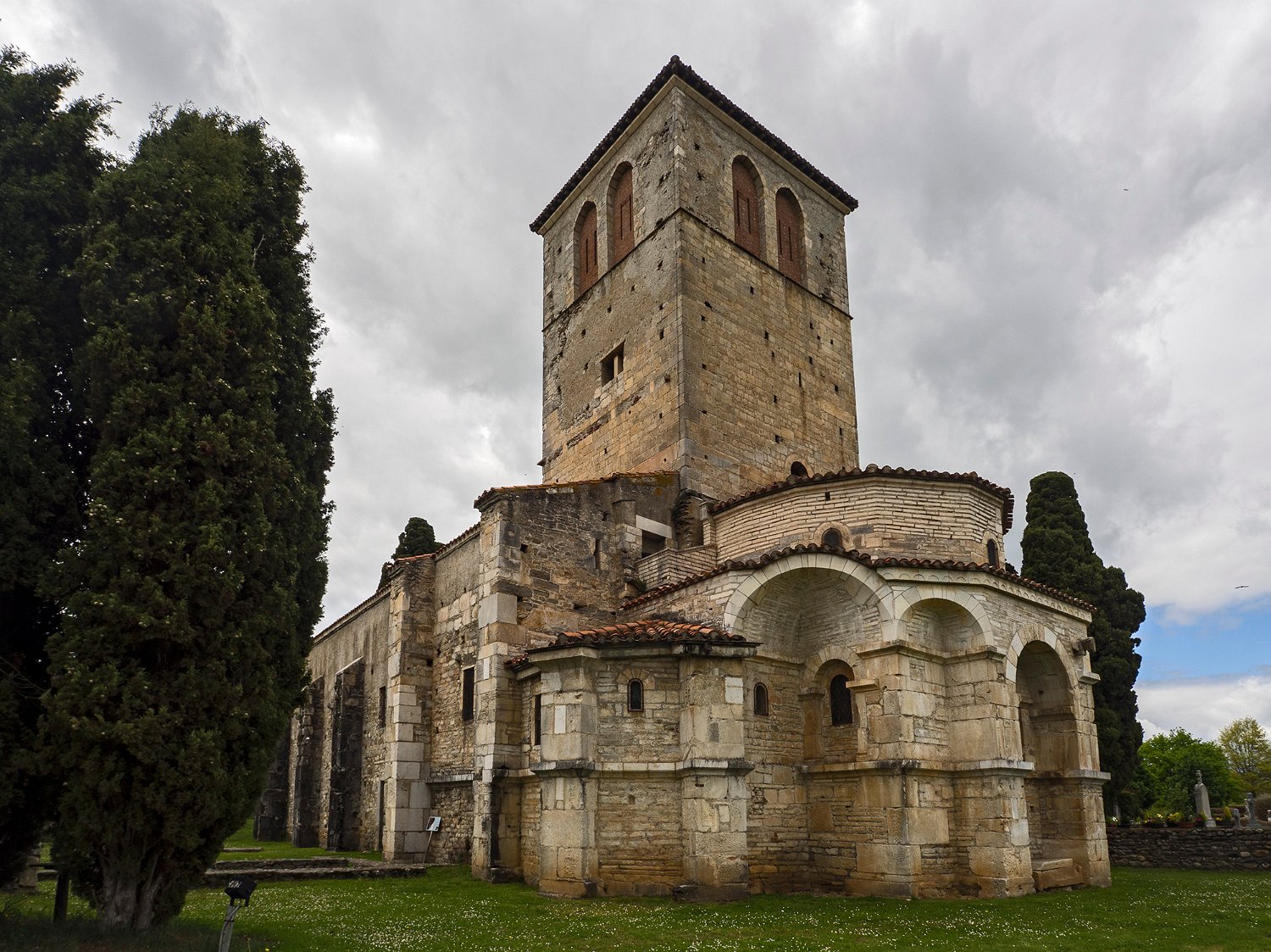 Voisine de la cathédrale de Saint-Bertrand-de-Comminges, construite sur une nécropole païenne et un cimetière paléochrétien, la basilique est consacrée depuis le tout début du XIII° à saint Just, saint Pasteur et saint Etienne. La construction de ce bâtiment a utilisé une grande quantité de pierres, de blocs de marbre et de sculptures ayant appartenu aux constructions romaines des alentours. L’église aurait été édifiée entre la fin du XIe siècle et le début du XIIIe. Le clocher pourrait dater du XIVe. Les vestiges d’un cloître témoignent d’une probable vie communautaire très ancienne.