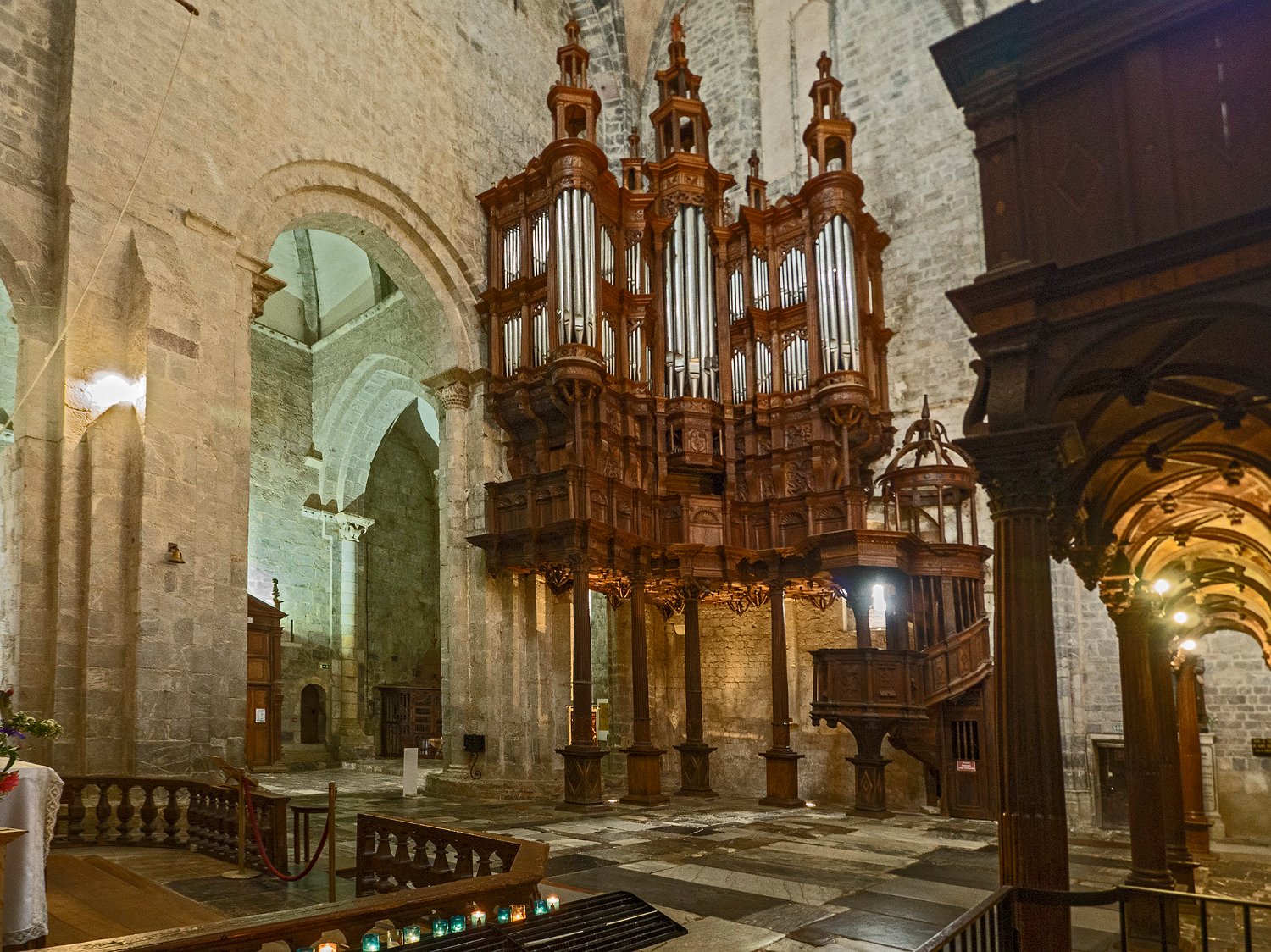 Orgue du XIe siècle. A gauche, le nartex roman (entrée de la cathédrale)