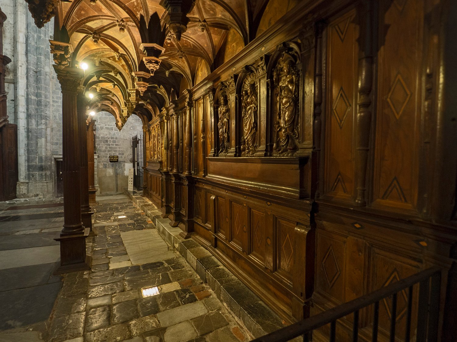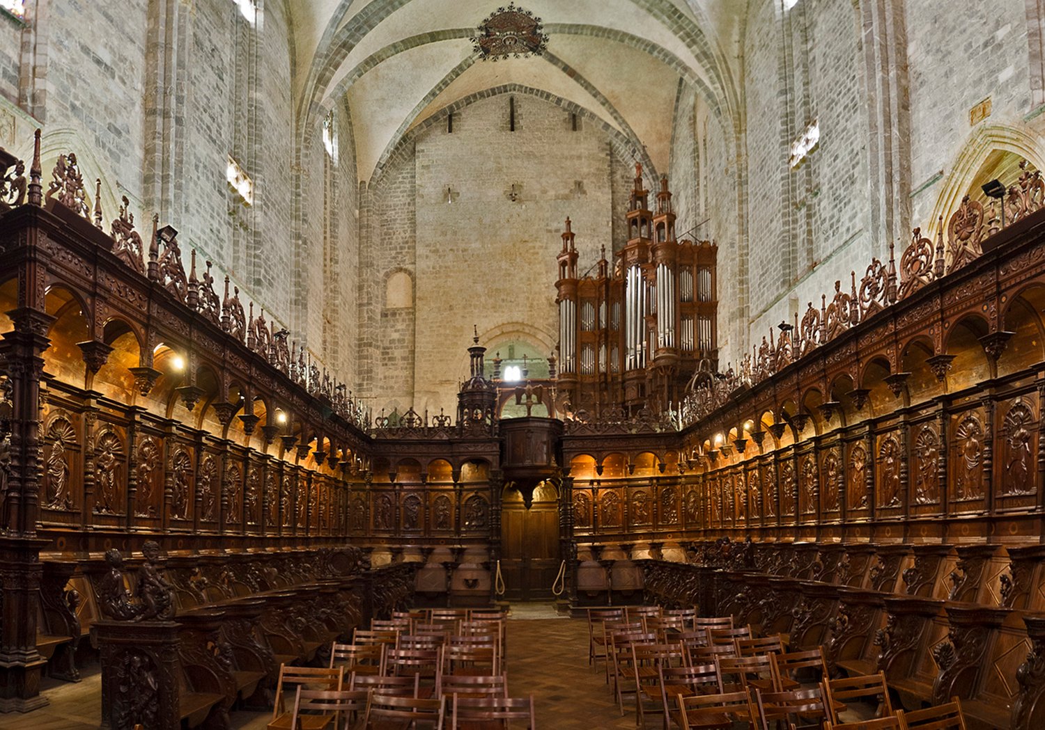 Eglise intérieure en boiserie équipée de 66 stalles destinées aux chanoines
