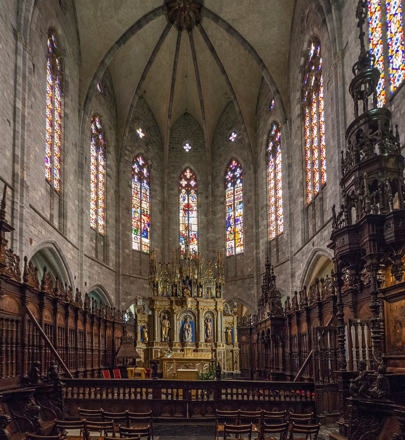 Choeur renaissance- Au fond le rétable en bois sculpté