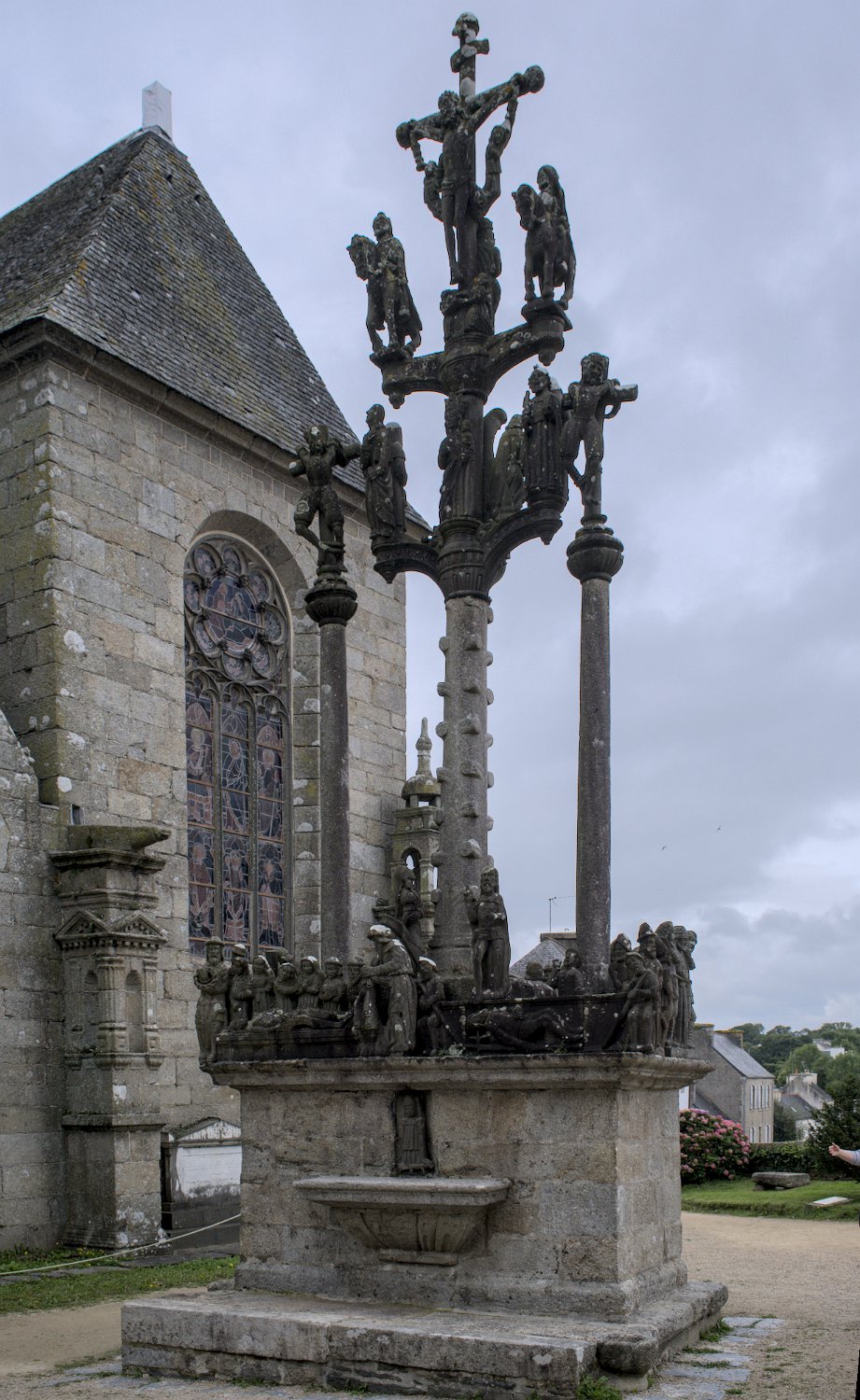 La mace ( massif de soubassement) est précédée par un « autel » ou table d'offrande, et surmontée de la niche du saint patron. Elle est le support d'une plateforme où une quarantaine de personnages se succèdent, et de trois croix. La croix du centre est celle du Christ et les deux latérales les croix des deux larrons.