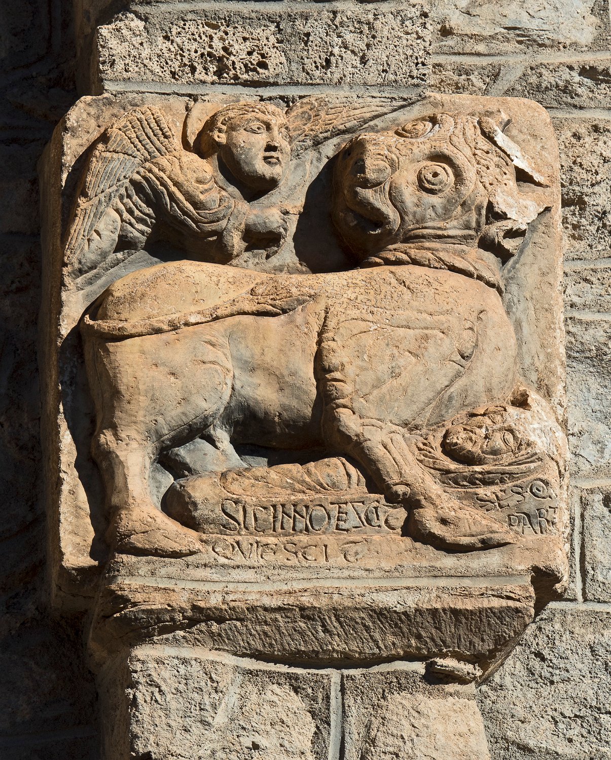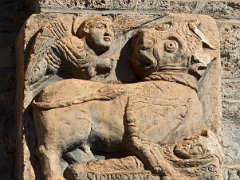 Sculpture représentant la découverte de la sépulture de Saint Aventin par le Taureau (façade méridionale)
