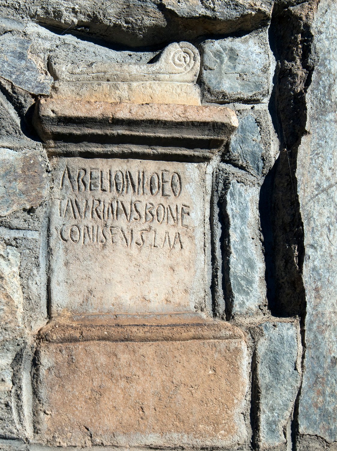 Autel payen dédié au dieu pyrénéen Abellio au-dessus d'un cippe