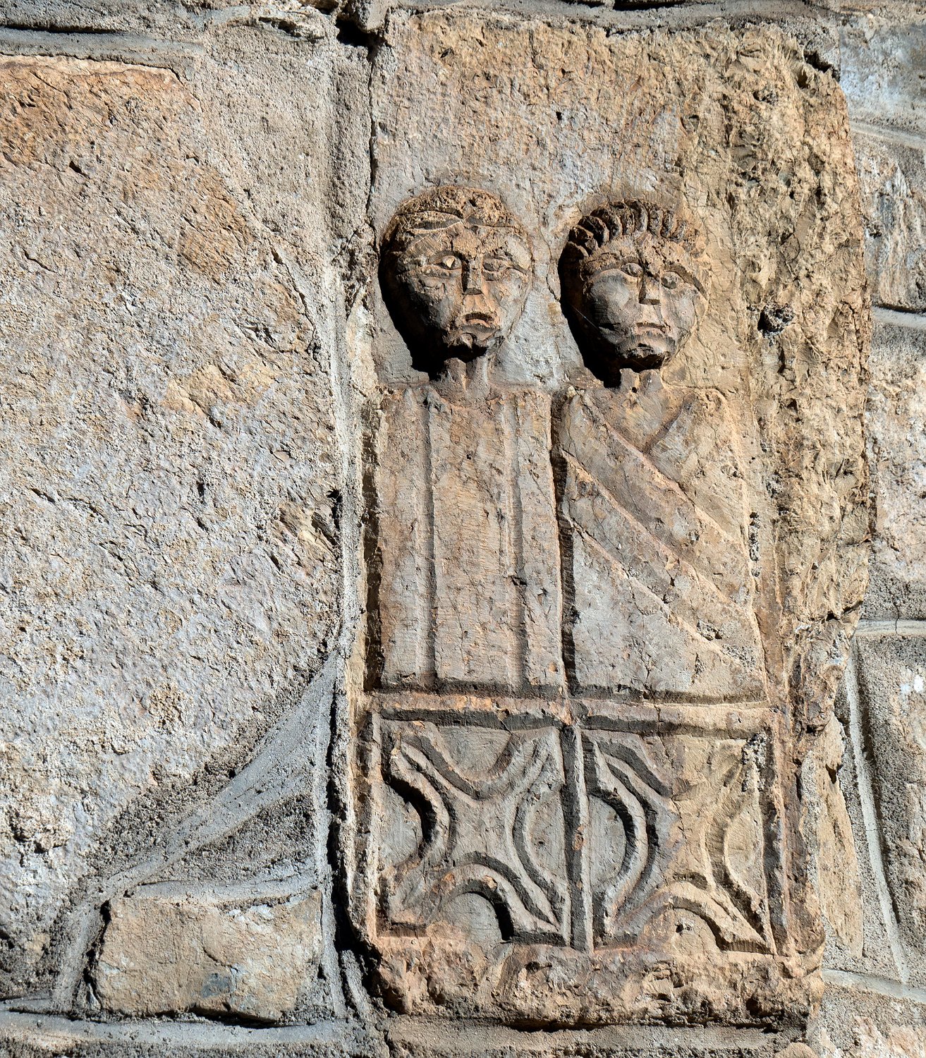 Sculpture représentant l'arrestation de Saint Aventin et son martyre