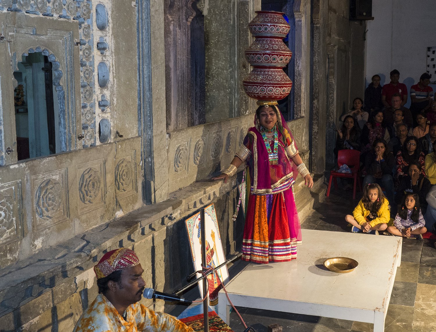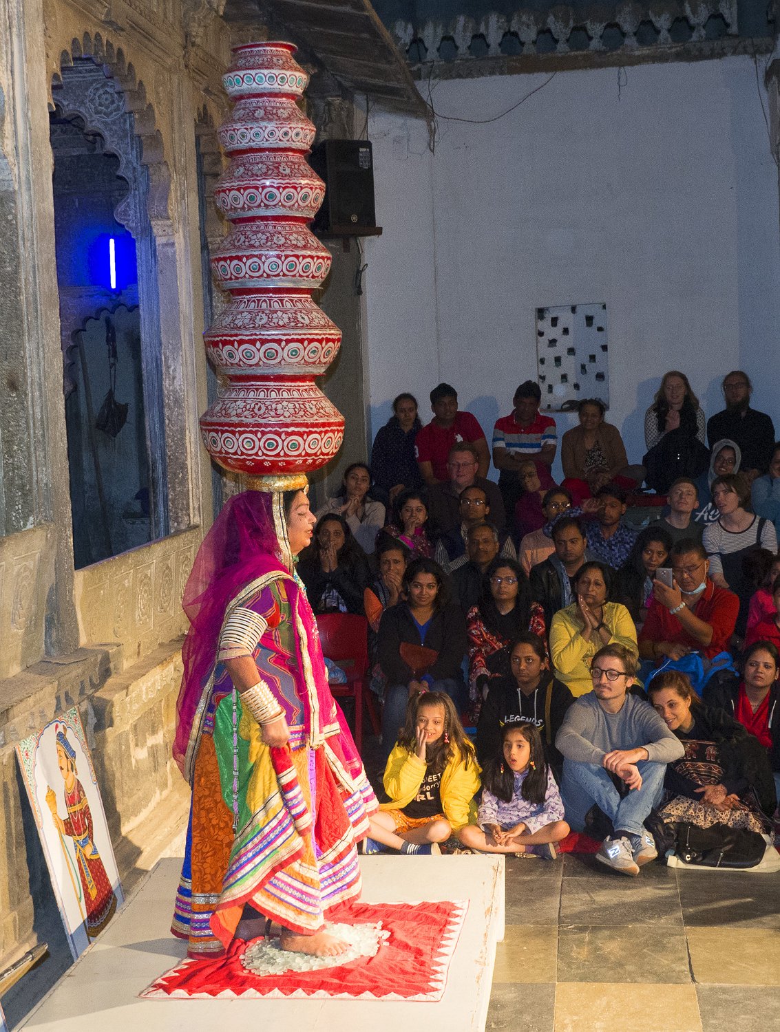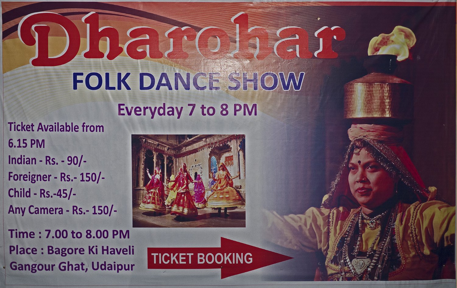 Affiche du spectacle à Udaipur  A Udaipur, les spectacles traditionnels se déroulent dans le cadre magnifique du Bagore Ki Haveli.