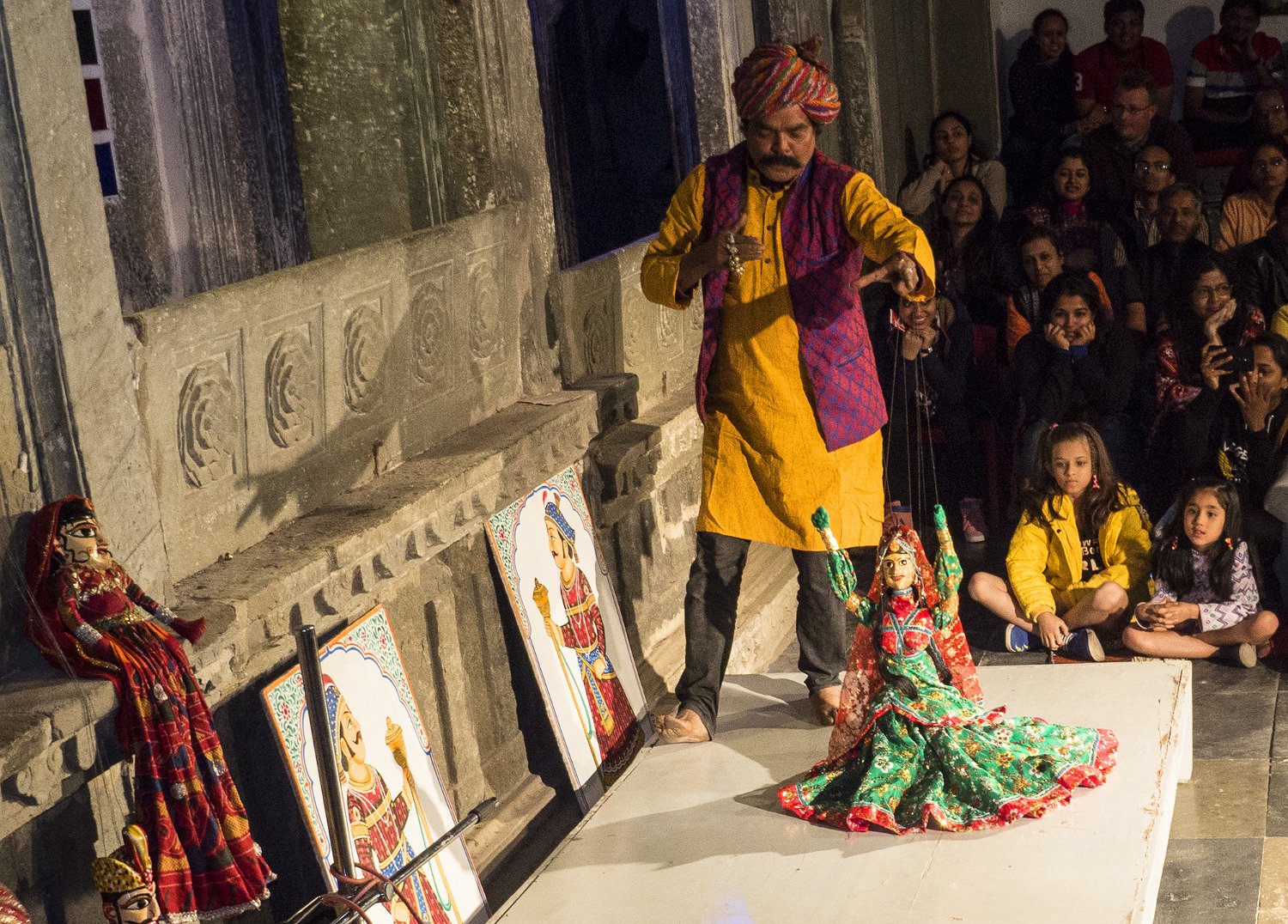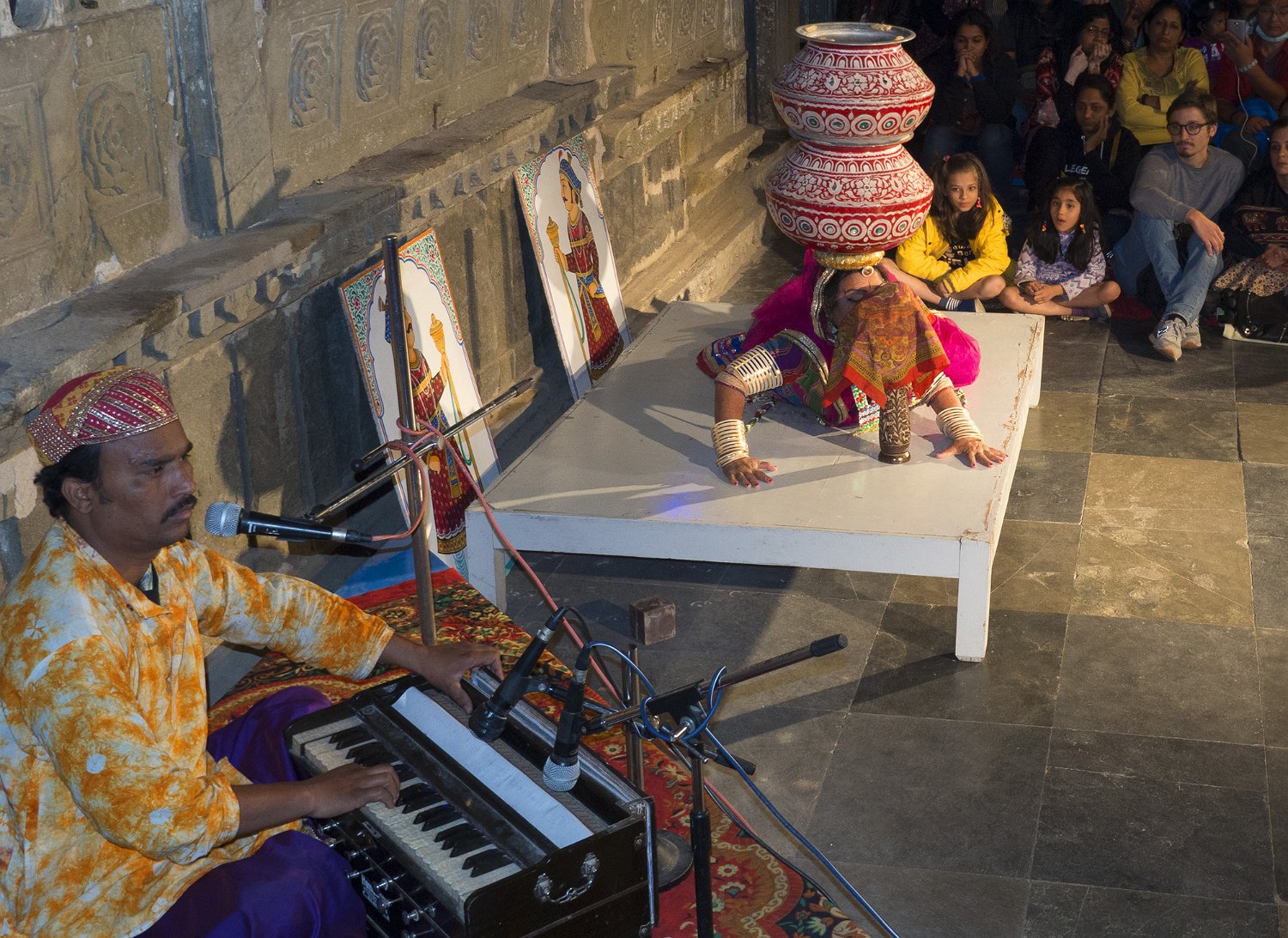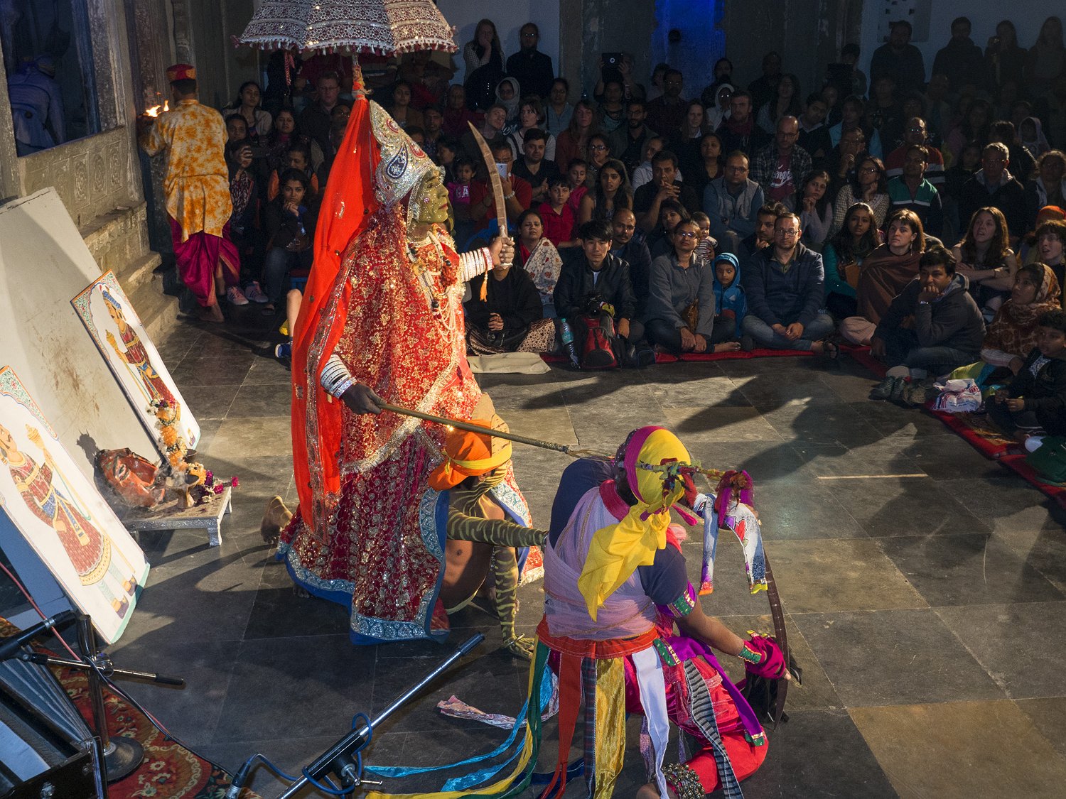 Affiche du spectacle à Udaipur  A Udaipur, les spectacles traditionnels se déroulent dans le cadre magnifique du Bagore Ki Haveli.