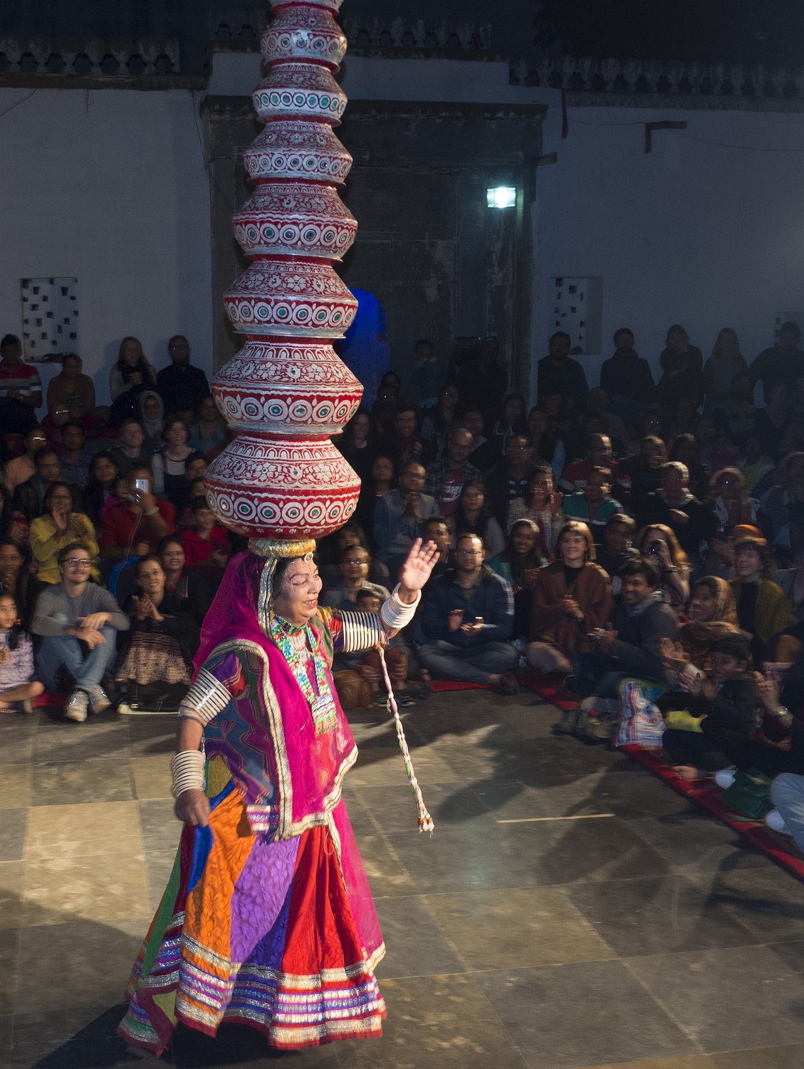 Danse "Bawhai"  Cette danse représente la dureté de la vie des femmes du désert transportant des récipients en terre cuite sur leur crâne pour rapporter de l’eau dans leur foyer. Cette danse se termine dans du verre pilé pour exprimer les épreuves qu'elles vivent  et leur aptitude à les endurer et à être heureuses dans l'adversité Danse "Bawhai" à Udaipur Danse "Bawhai" Danse "Bawhai"  La danseuse à 70 ans