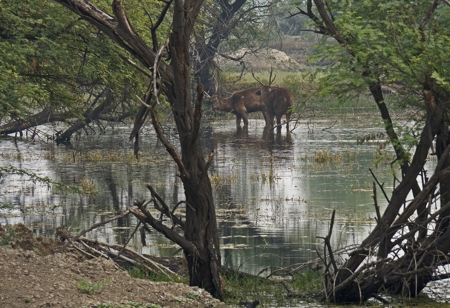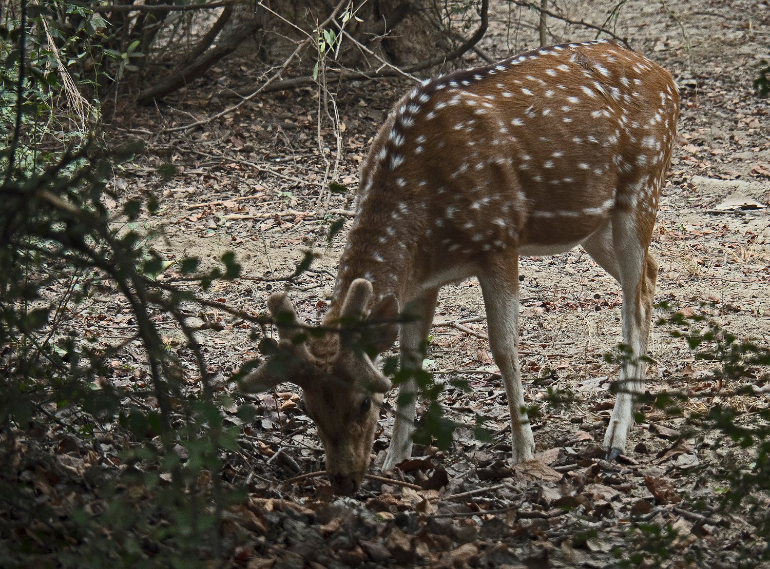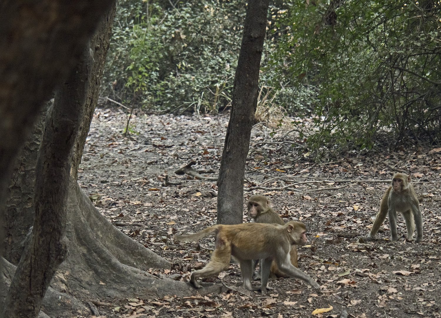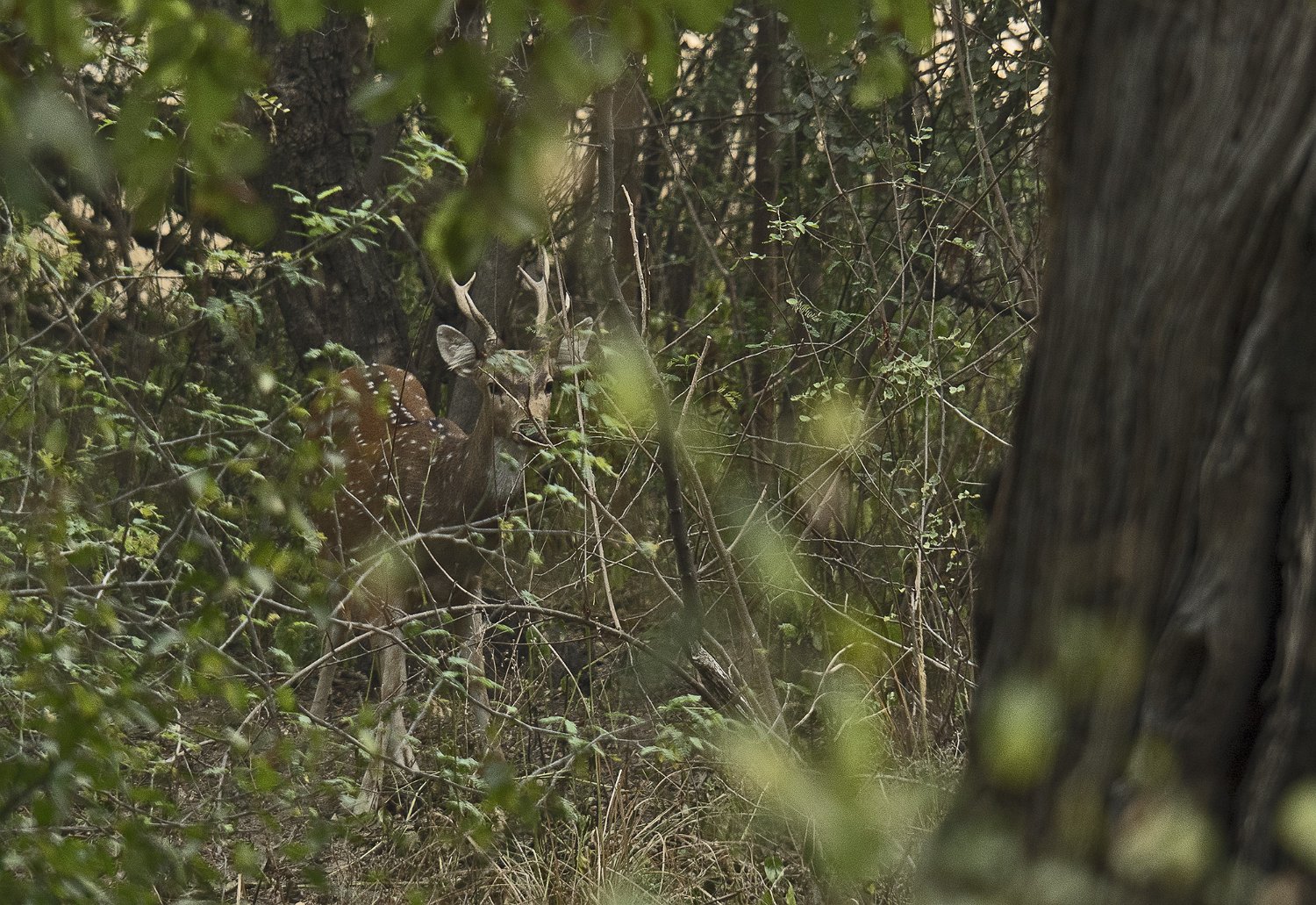 Cerf axis mâle Chacal Sangliers indiens à crète Singes