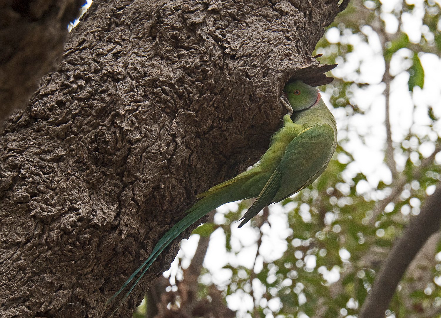 Perruche à collier au bord de son nid Non identifié Bulbul à ventre rouge