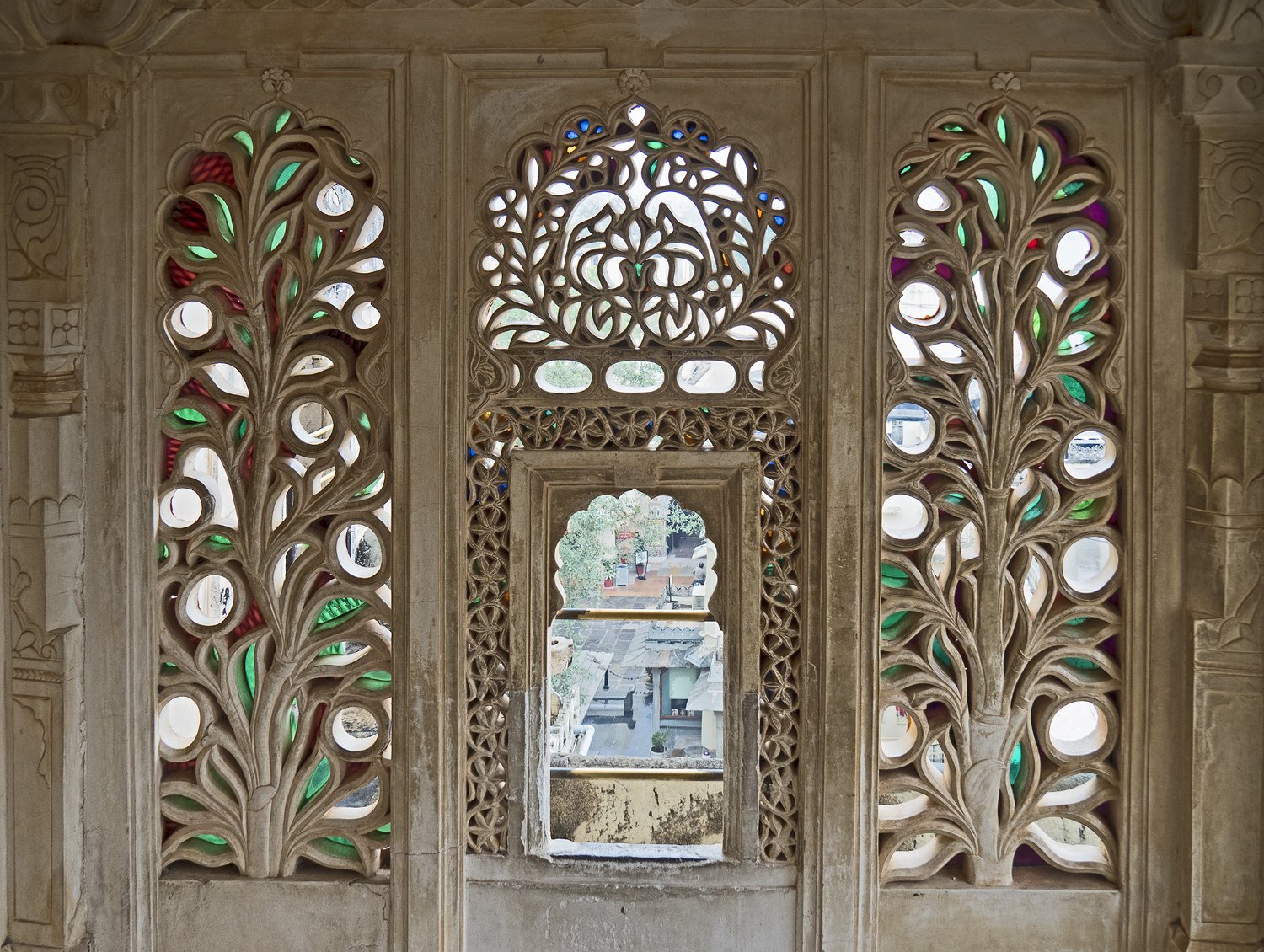 32Zenana Mahal - Fenêtre décorée de mosaïques dans la cour des paons Un magnifique mélange de styles architecturaux moghols et rajpoutes
