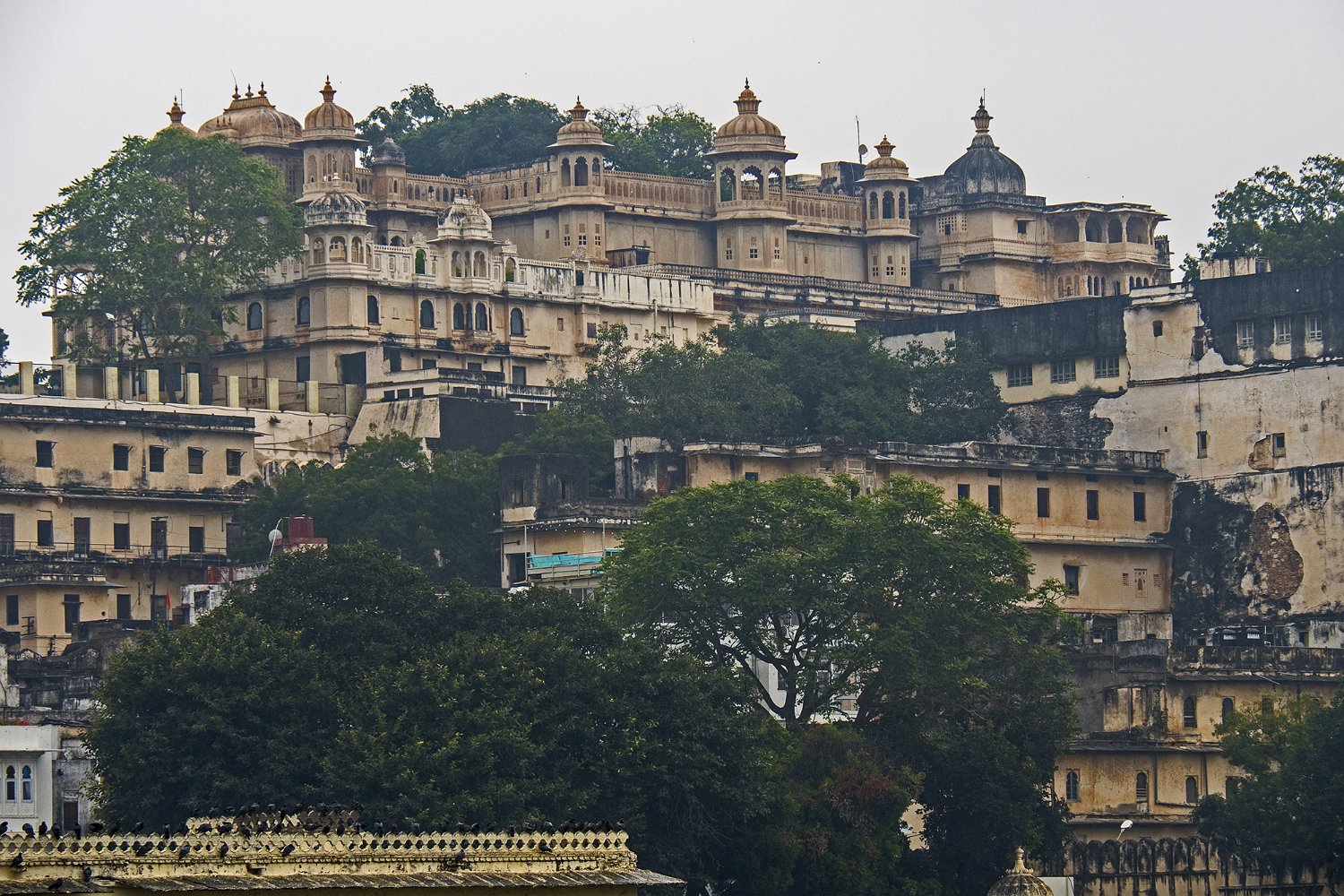 Le City Palace d'Udaipur (Inde - Rajasthan) est un ensemble de onze palais construits en 1559 par le Maharana Udai Singh (1522-1572) en même temps que la ville d'Udaipur. Il a fait l'objet d'aménagements complémentaires par ses successeurs durant près de 3 siècles. Il est construit en granit et en marbre et très richement décoré de marbre, de miroirs, d'argent et de peintures murales.