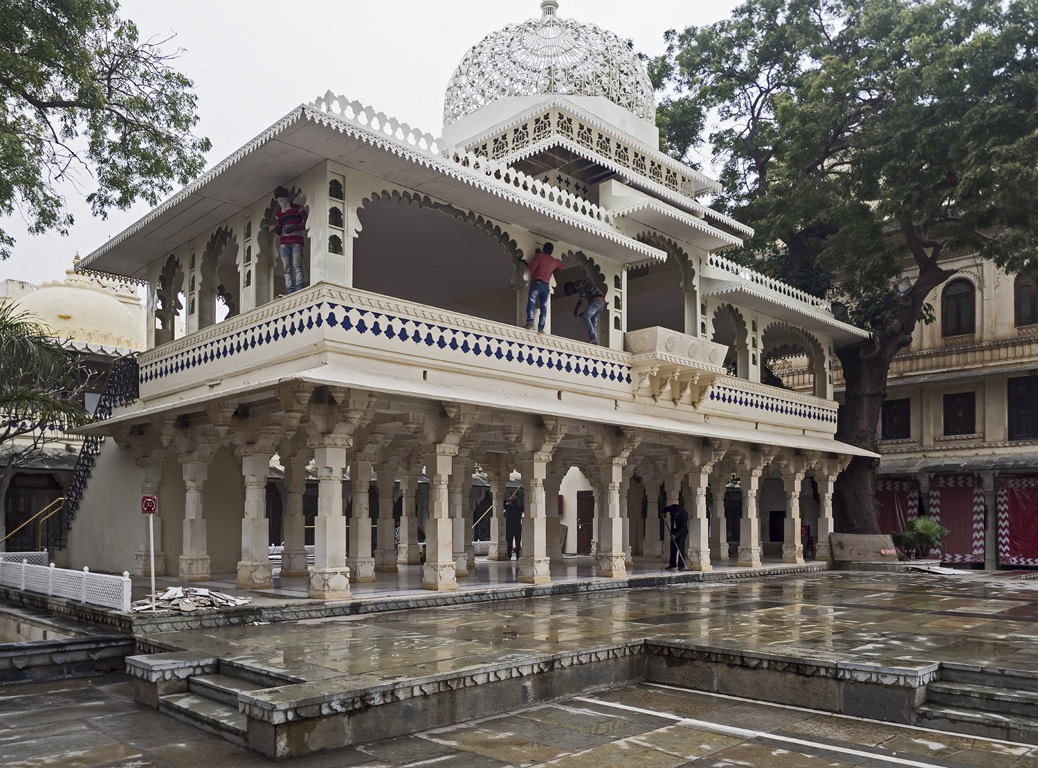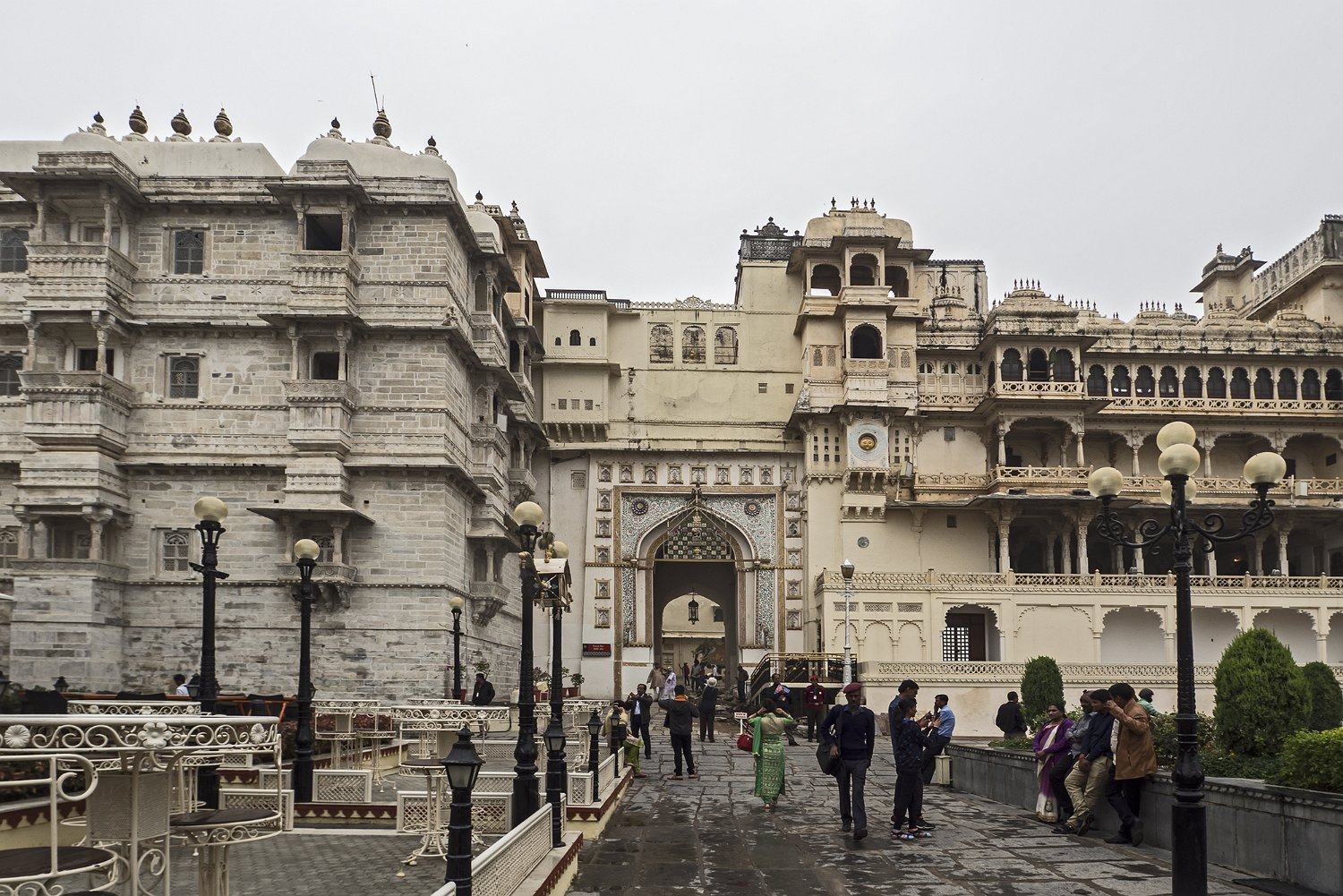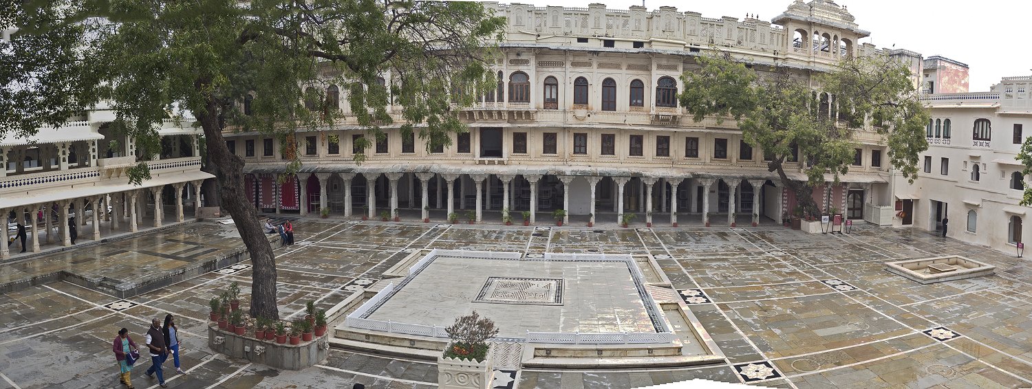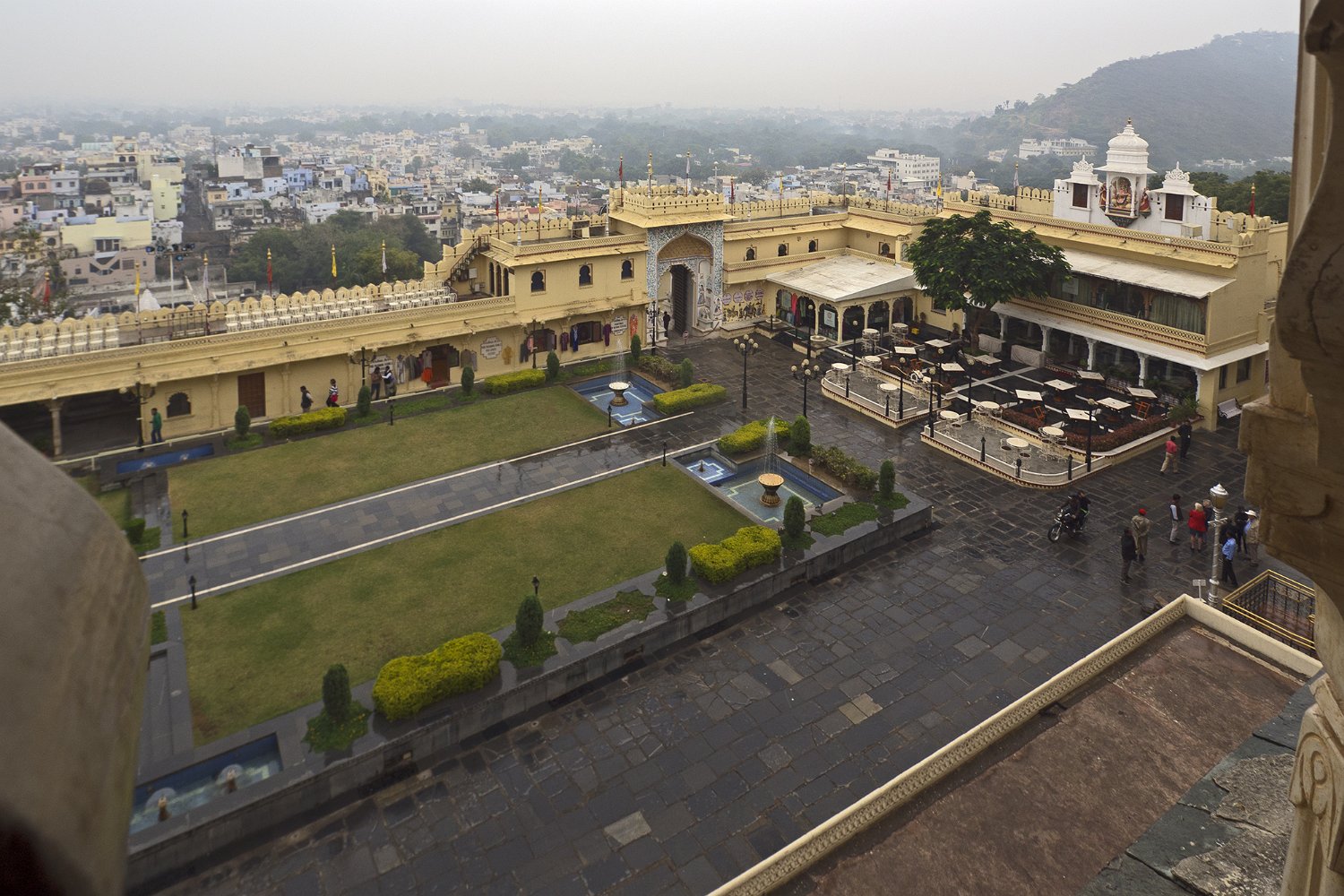 44La grande cour (Maneh Chowk) et l'entrée du city palace (Tripolia gates) - Vue sur la ville d'Udaipur