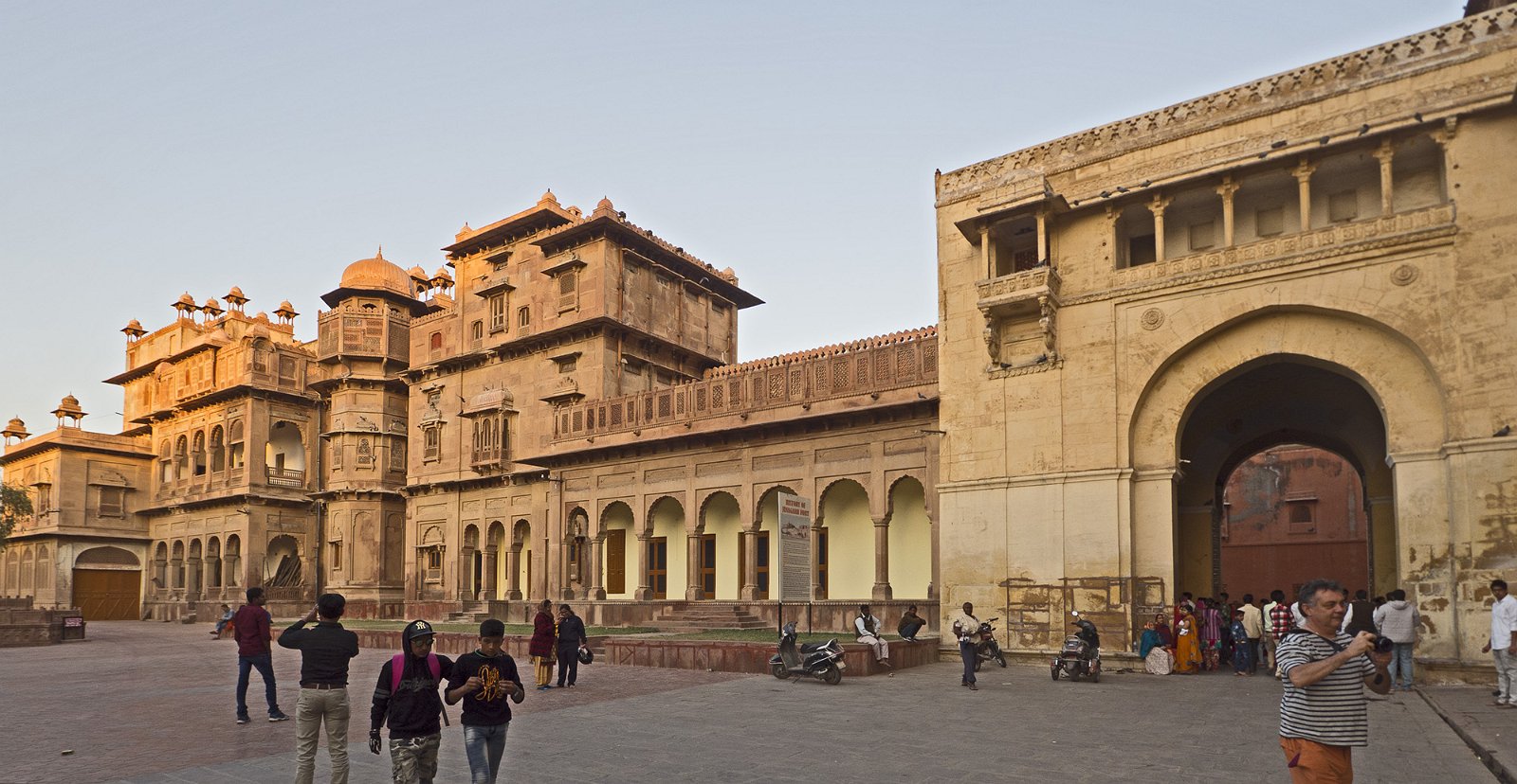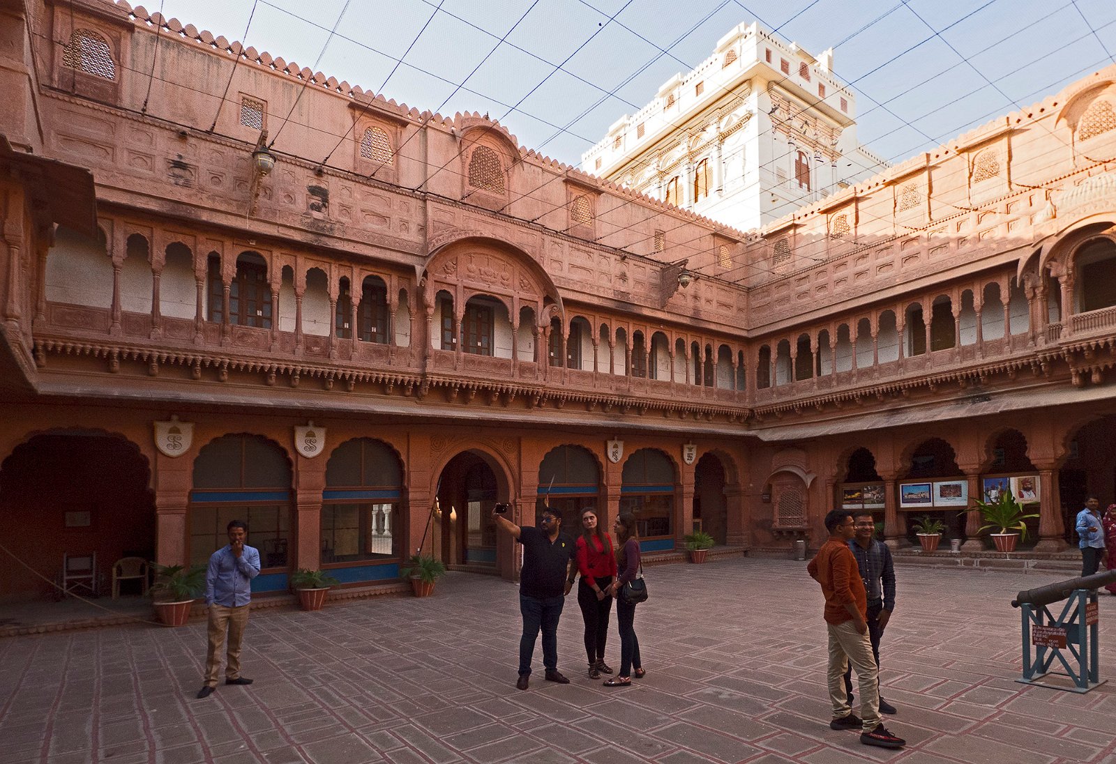 12Première cour- Façade du palais Vikram Vilas C'est le dernier palais construit dans le fort Junagarh de 1936 à 1937 par le Maharaja Ganga Singh (1887-1943). Ce dernier était un partisan de l'architecture traditionnelle rajpoute, c'est pourquoi il a fait construire ce palais dans ce style dit "Revival"