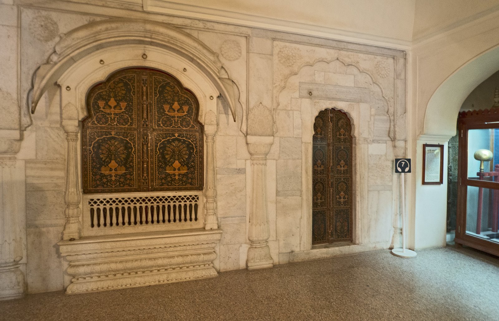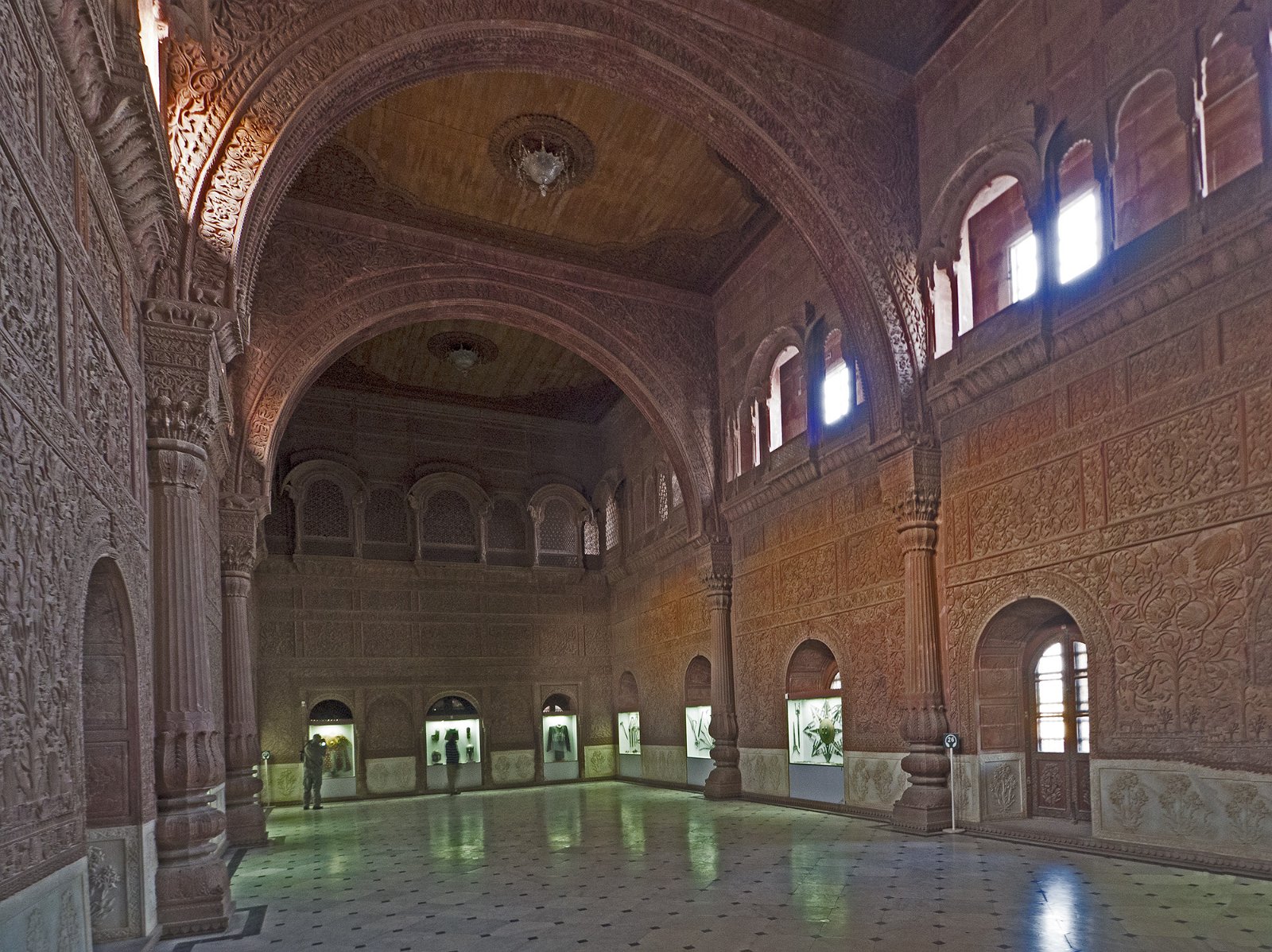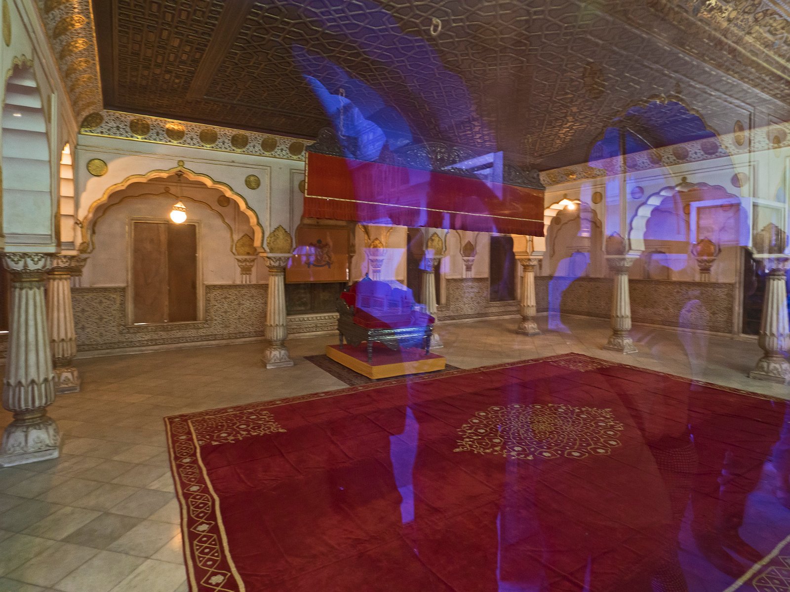 42Karam Mahal - hall des audiences publiques Désolé, vu à travers une vitre. Le store rouge est un système de ventilation qui était manoeuvré à la main
