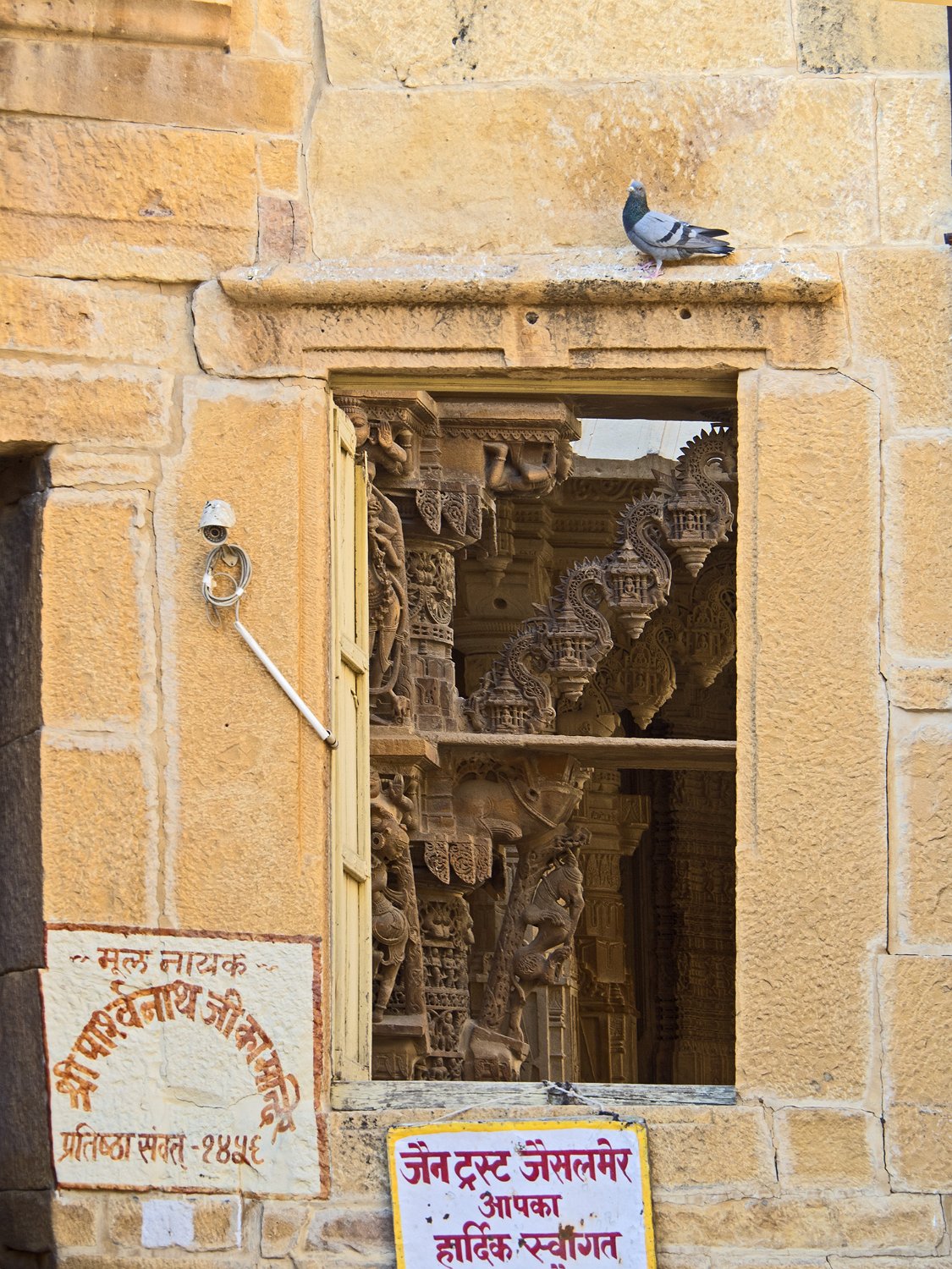 Temple jaïn  Les temples (ils sont nombreux) ont été construits entre le 12ème et le 15ème siècle. Temple jaïn  Ils sont construits en gré jaune, mais l'intéreiur est en marbre blanc Temple jaïn Temple jaïn