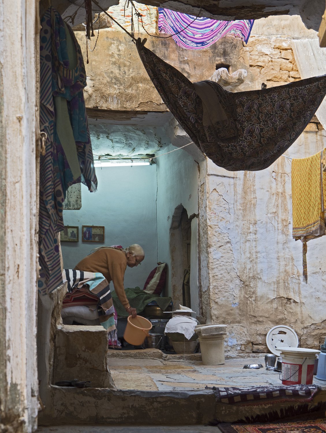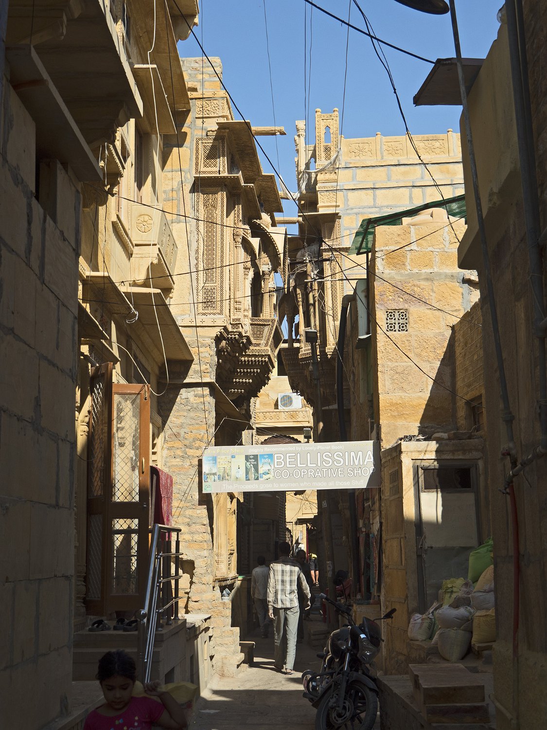 Haveli Ancien haveli Rue à l'intérieur de la forteresse  Les rues sont étroite (maximum 3m de largeur) et les bâtiments construits en encorbellement pour limiter la pénétration du soleil Rue  Les bâtiments se touchent presque dans leur partie supérieure
