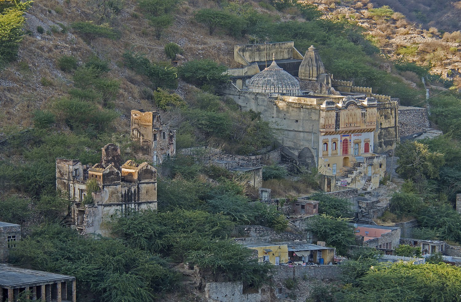 Amber est l'ancienne capitale de l'état de Ddundhar qui a été transféré à Jaipur en 1727. La ville est située à la sortie d'une gorge occupée par un lac (Maota lake).Après une longue période de stagnation, la population s'est accrue pour atteindre 452000 habitants au recensement de 2011.