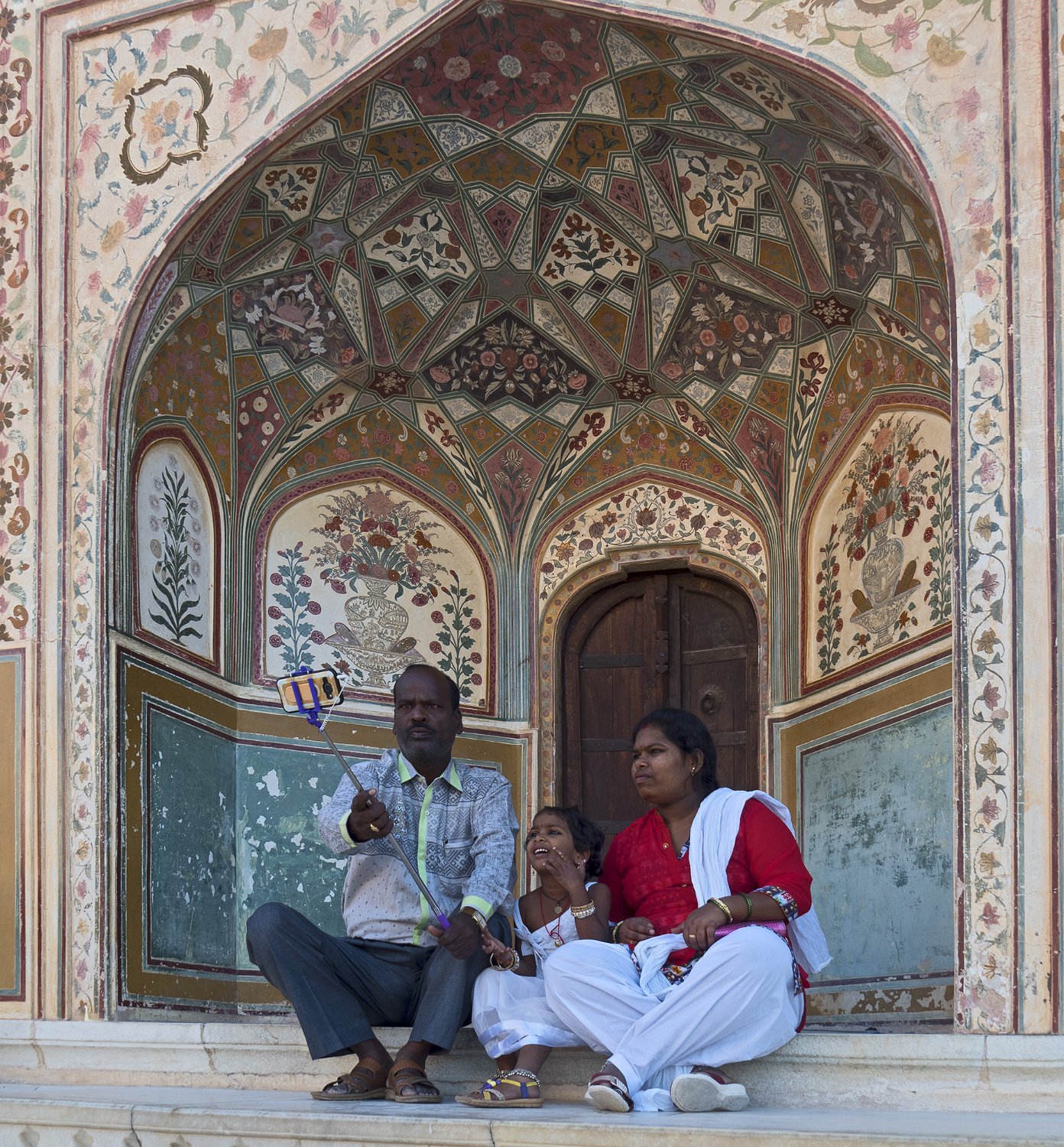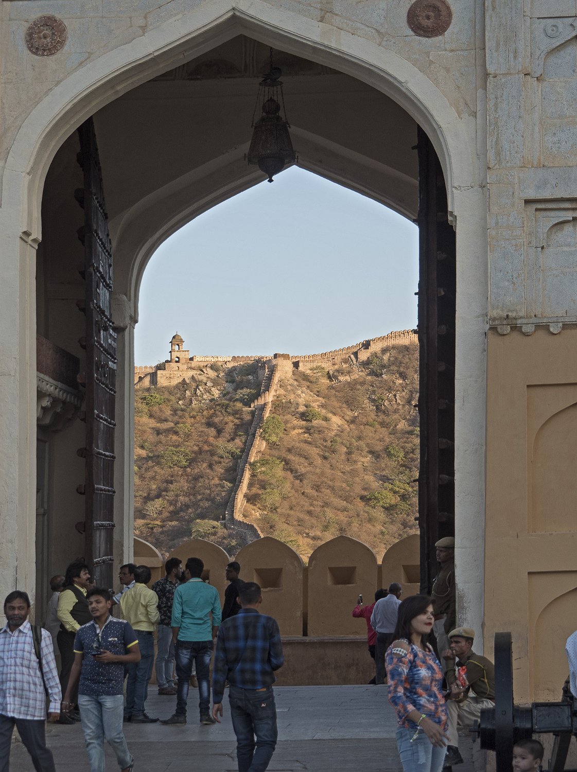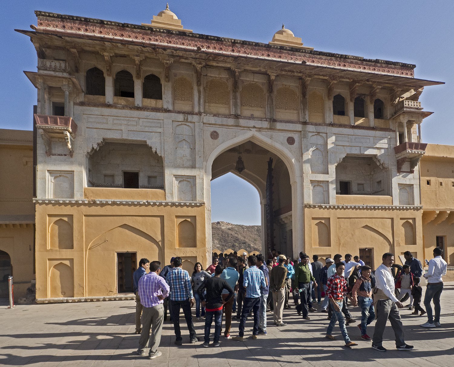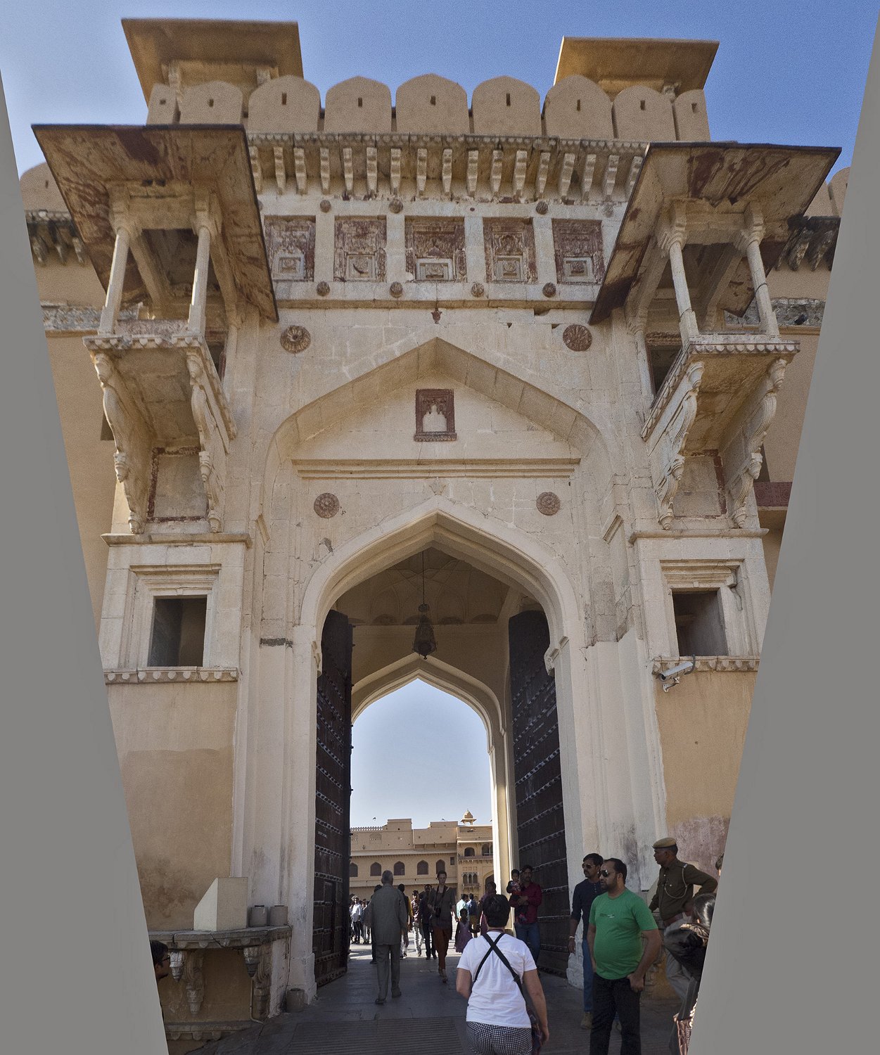 La cour supérieure, la porte de Danesh à droite et le Diwan-i-Aam à gauche Autre vue de la cour supérieure La porte de Ganesh  Porte de cérémonie donnant accès aux appartements privés du palais Selfie à côté de la porte de Ganesh