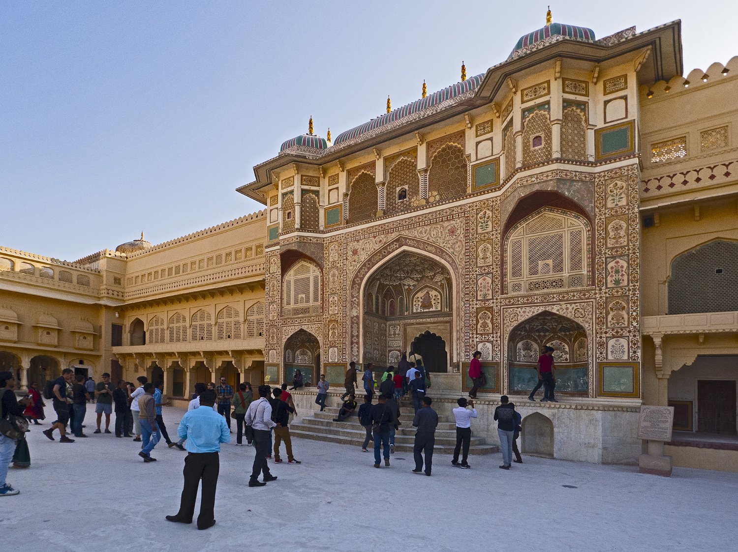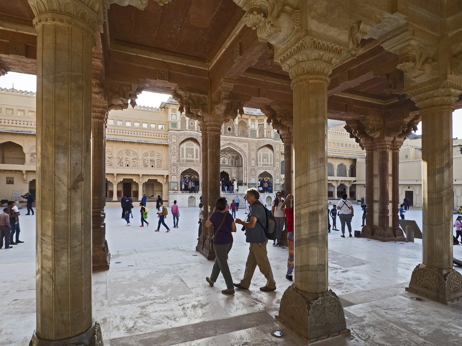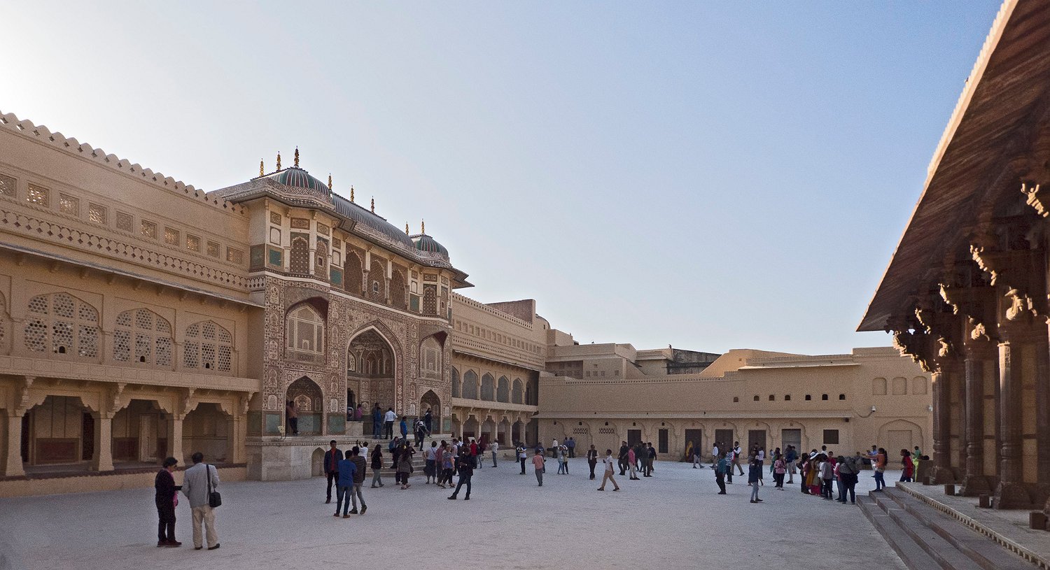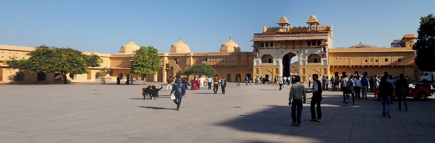 La cour supérieure, la porte de Danesh à droite et le Diwan-i-Aam à gauche Autre vue de la cour supérieure La porte de Ganesh  Porte de cérémonie donnant accès aux appartements privés du palais Selfie à côté de la porte de Ganesh
