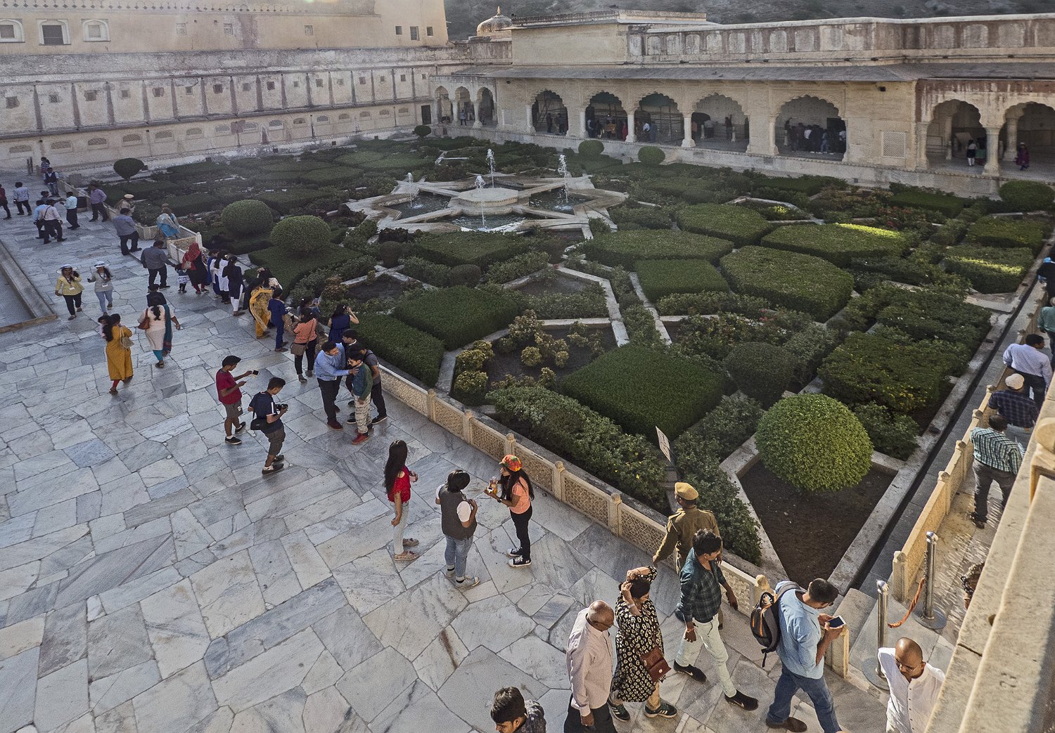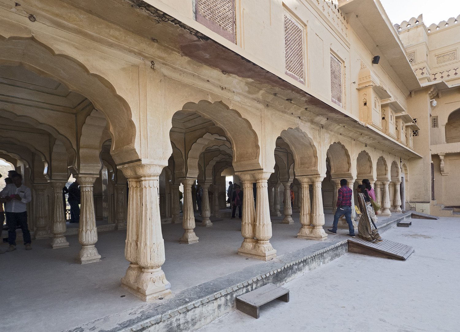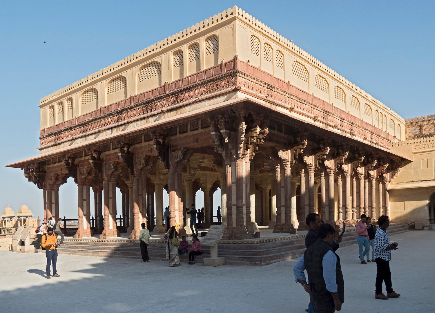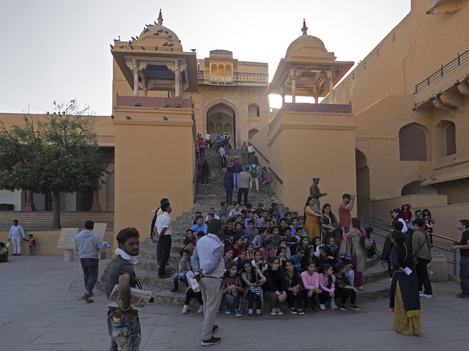La cour supérieure, la porte de Danesh à droite et le Diwan-i-Aam à gauche Autre vue de la cour supérieure La porte de Ganesh  Porte de cérémonie donnant accès aux appartements privés du palais Selfie à côté de la porte de Ganesh