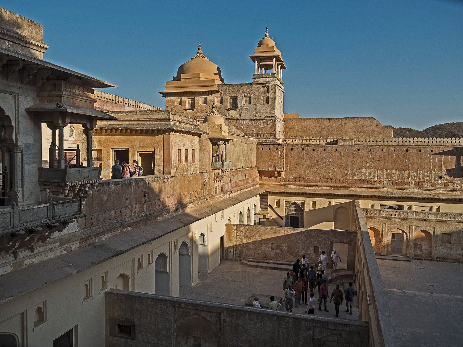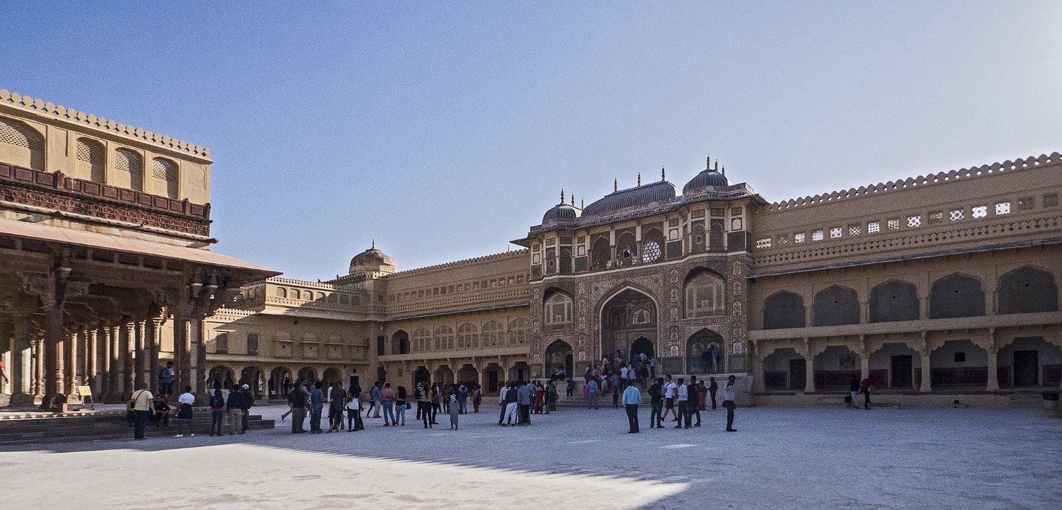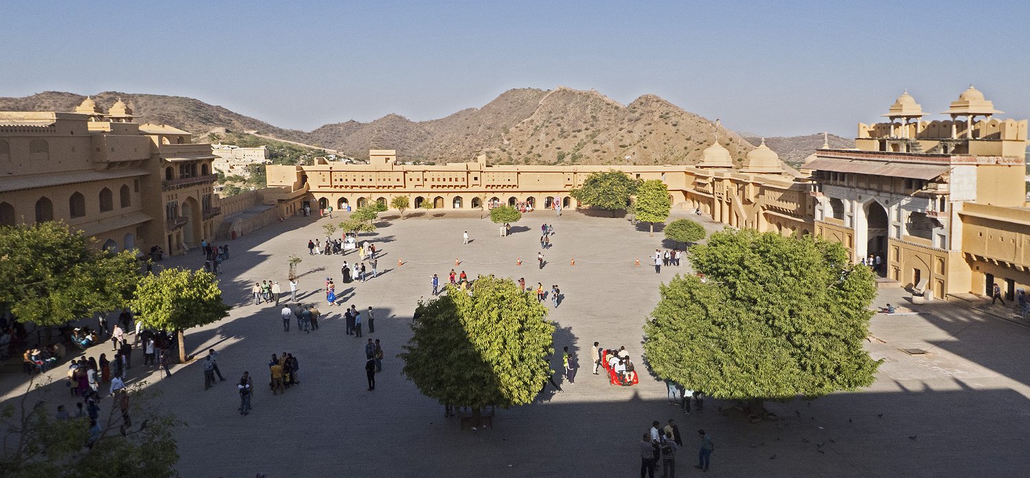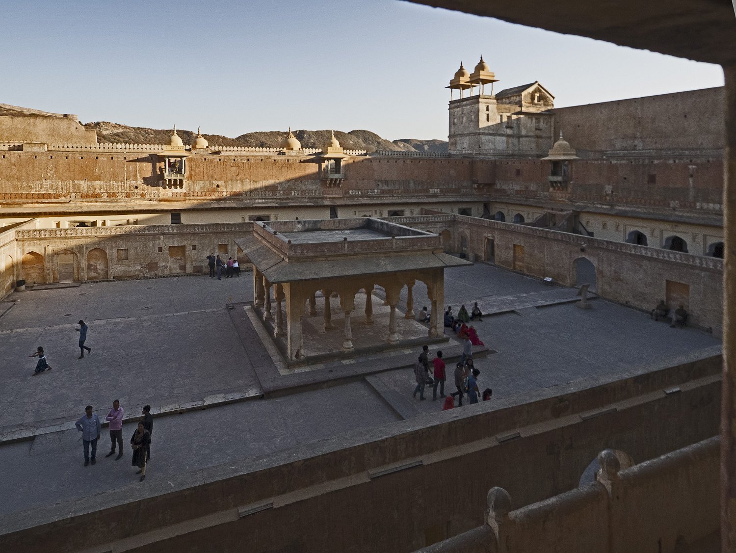 Le fort d'Amber est construit en gré rouge au XVIème siècle. Il s'étale sur quatres niveaux. L'accès se fait par la porte du soleil (Suraj Pole), à l'issue de la montée d'une longue rampe d'accès depuis la vallée. Le niveau le plus élevé était réservé aux femmes