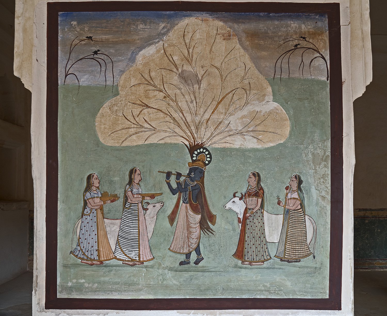Décoration murale dans le Sheesh Mahal (palais des miroirs) Peinture sur mur Décoration Vue arrière du zenana (palais des femmes)
