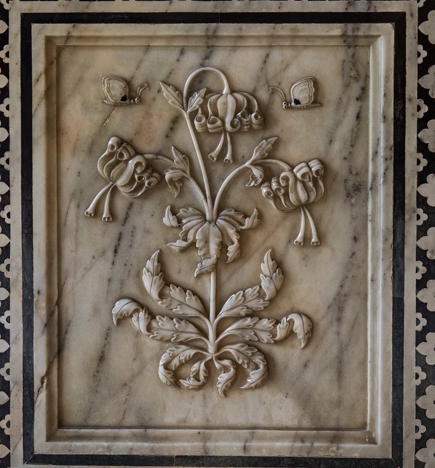 Diwan-i-Aam , chapiteau d'un des piliers Galerie Galerie Le lac Maota et le Dilaram Bagh (jardin safran) vus des galeries  Le jardin où le coeur se repose