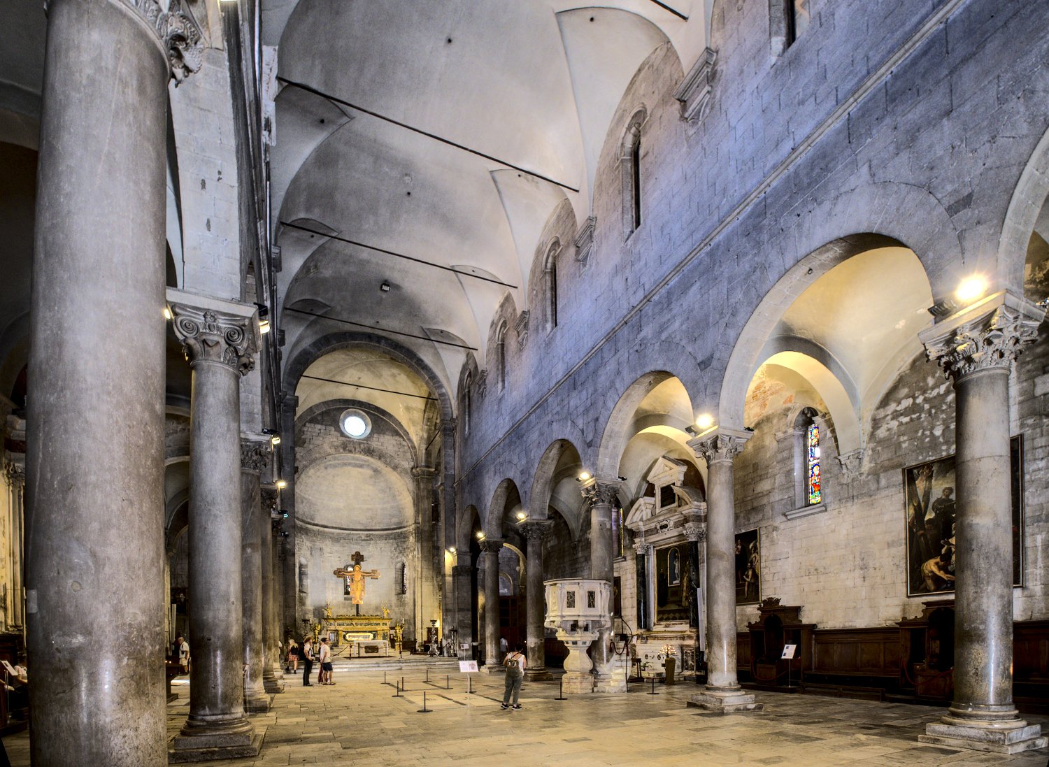 L’église actuelle fut construite à partir de 1070 par volonté du pape Alexandre II. La durée des travaux amena à la création d’une œuvre architecturale complexe, en raison dela juxtapositon de différents styles, gothiques et romans.