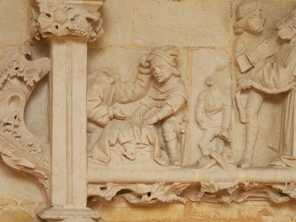 Siège abbatial, détail (soldats jouant les vêtements de Jésus)