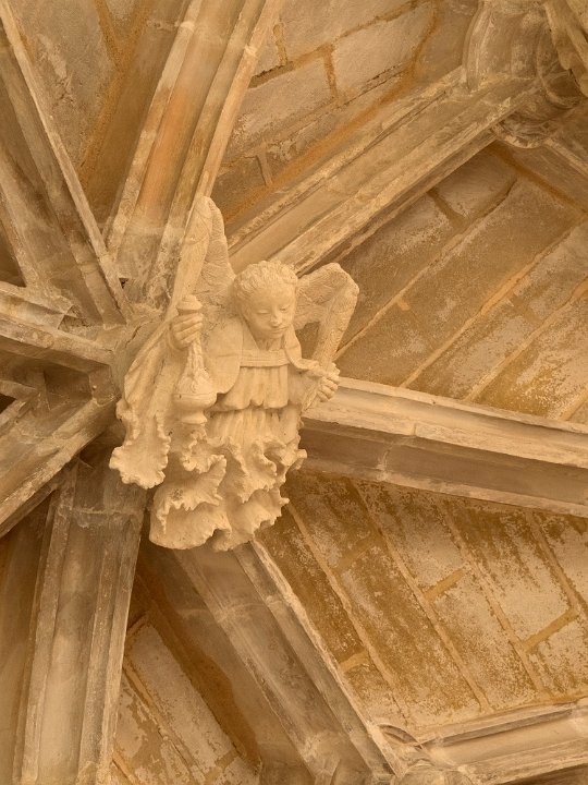 Clé de voute (deux anges présentant un tissu portant la silhouette du Christ)