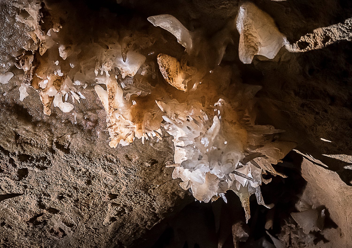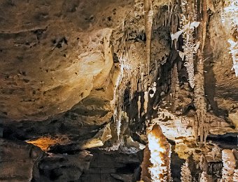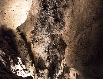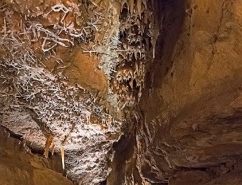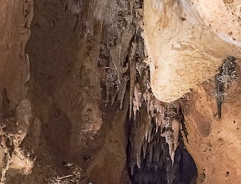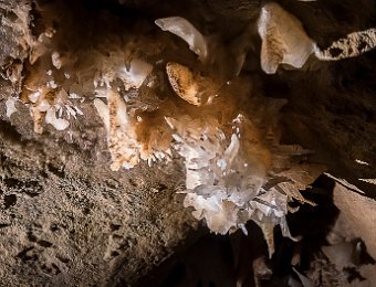 Les concrétions sont surtout visibles au plafond des galeries